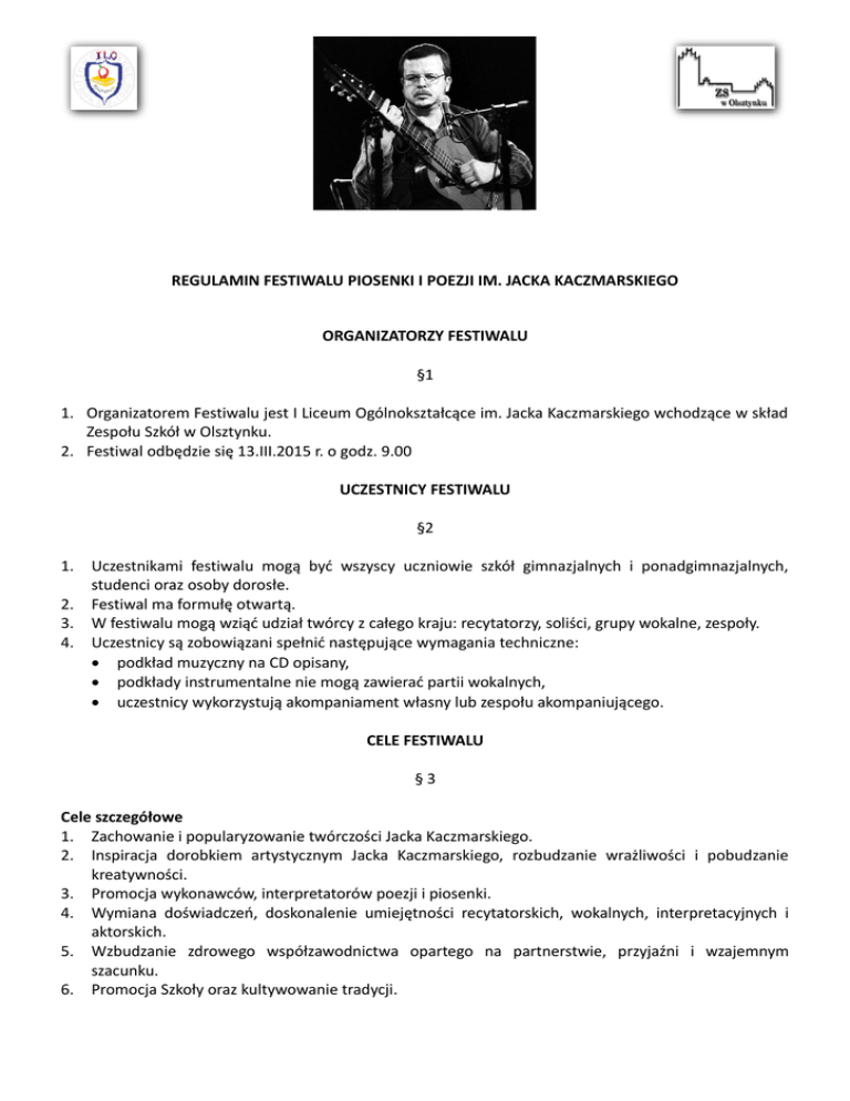 REGULAMIN FESTIWALU PIOSENKI I POEZJI IM. JACKA