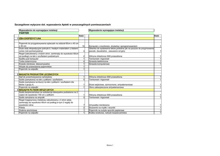 Szczegółowe wytyczne dot. wyposażenia Apteki w