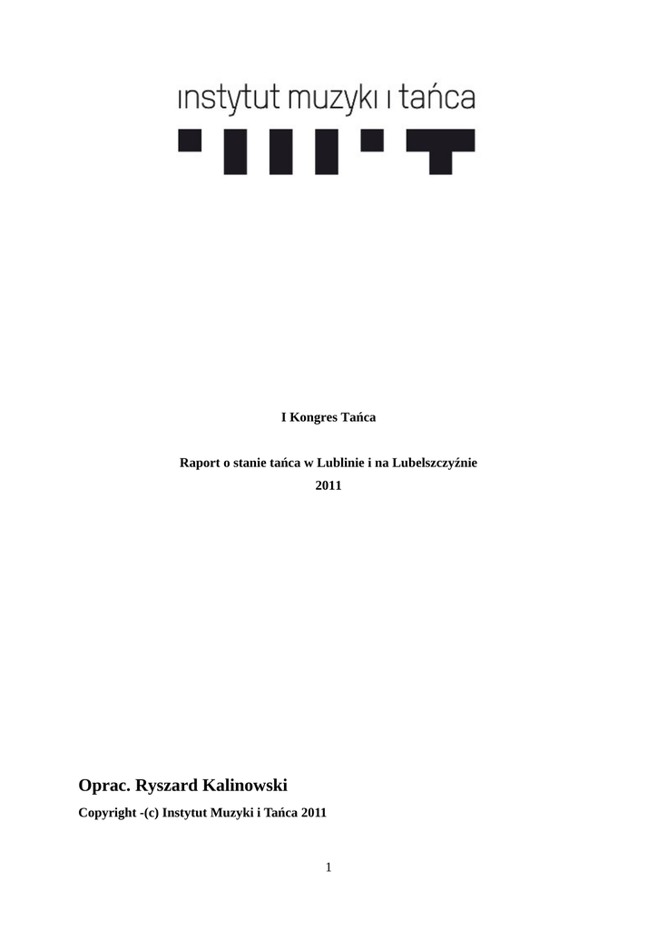 I Kongres Tańca Raport o stanie tańca w Lublinie i na Lubelszczyźnie 2011 Oprac. Ryszard Kalinowski Copyright -(c) Instytut Muzyki i Tańca 2011 1 I KONGRES TAŃCA RAPORT O STANIE TAŃCA W LUBLINIE I NA LUBELSZCZYŹNIE Spis treści 1. Wstęp historyczny.................................................................................................................3 2. Wykaz i charakterystyka działających podmiotów...........................................................4 2.1. Zespoły i twórcy.................................................................................................................4 2.1.1. Zespoły tańca ludowego..................................................................................................4 2.1.2. Zespoły tańca współczesnego.........................................................................................5 2.1.3. Balet klasyczny w różnych formach..............................................................................6 2.1.4. Inne formy tańca.............................................................................................................6 3. Infrastruktura.......................................................................................................................7 3. 1. Teatry i centra kultury.....................................................................................................7 3. 2. Domy kultury, uczelnie, szkoły........................................................................................7 4. Sugestie dotyczące możliwości rozwoju regionalnego.......................................................8 5. Podsumowanie.......................................................................................................................9 1. Wstęp historyczny 2 Taniec w Lublinie i na Lubelszczyźnie związany jest z trzema zjawiskami kulturowymi: twórczością ludową, teatrem alternatywnym oraz kulturą masową. Istnieją również formy nawiązujące do baletu klasycznego i flamenco, ale są one mało rozpowszechnione. Historia tańca w regionie lubelskim sięga lat 40. i 50. XX wieku i związana jest przede wszystkim z działalnością zespołów tańca ludowego, a także z nurtem teatru dramatycznego i muzycznego. W roku 1947 rozpoczął działalność Teatr Muzyczny, w którym taniec zawsze był jednym z ważnych elementów widowiska scenicznego. Istniejący od roku 1886 Teatr Wielki (obecnie Teatr im. Juliusza Osterwy) także wykorzystywał różnorodne formy taneczne podczas spektakli teatralnych, podobnie jak miało to miejsce w najstarszym z lubelskich teatrów, czyli Teatrze Starym (którego historia sięga roku 1418). Mimo działalności wymienionych teatrów, to przede wszystkim zespoły ludowe nastawione były na promocję tańca jako głównego środka ekspresji twórczej, a jednocześnie nośnika tradycji i kultury ludowej. Głównym miejscem działania tych zespołów był i nadal pozostaje Lublin, ale także w regionie znajdziemy kilka ważnych i dobrze zorganizowanych ośrodków tańca ludowego. Bardzo ważnym okresem dla kształtowania się zjawiska tanecznego, określanego później jako teatr tańca, były lata 70. i 80. ubiegłego stulecia. Był to czas niezwykle bogatej i oryginalnej działalności teatrów alternatywnych, które nierzadko wybierały język ruchu jako jedno z głównych, a czasem wręcz podstawowych narzędzi ekspresji twórczej. Tak było w przypadku Teatru Wizji i Ruchu Jerzego Leszczyńskiego (1969-2008), a ciągle jest w przypadku Sceny Plastycznej KUL Leszka Mądzika (1970) i Ośrodka Praktyk Teatralnych „Gardzienice” Włodzimierza Staniewskiego (1977). Te i inne lubelskie grupy teatralne wywodzące się najczęściej z ruchu studenckiego były prekursorami nowych form organizacji zespołu teatralnego, jak i alternatywnych sposobów komunikacji z widzem. Dzięki fermentowi twórczemu lat 70. i 80. powstała Grupa Tańca Współczesnego Politechniki Lubelskiej Hanny Strzemieckiej, jedna z najważniejszych instytucji artystycznych dla rozwoju tańca na Lubelszczyźnie, działająca do dziś. Powołana do życia w roku 1993 GTWPL swoją misją artystyczną nawiązywała do Zespołu Gimnastyki Artystycznej z roku 1977 oraz zespołu tańca nowoczesnego „Pandora” (1983), które także działały przy Politechnice Lubelskiej − najpierw z udziałem, a potem pod kierownictwem Hanny Strzemieckiej. Naturalną konsekwencją działalności GTWPL oraz aktywności i organizacyjnej determinacji Hanny Strzemieckiej, przy współudziale kilku jej tancerzy, w roku 2001 powołany został do życia Lubelski Teatr Tańca, którego siedzibą stało się Centrum Kultury w Lublinie. Początek nowego stulecia to także ogromny wzrost aktywności najmłodszego pokolenia tancerzy pozostających pod ogromnym wpływem kultury masowej, a przede wszystkim muzyki popularnej i mediów promujących nowe style tańca, takie jak hip-hop czy breakdance. Zarówno w Lublinie jak i regionie zaczęły powstawać grupy tańca skupione przy domach kultury i szkołach zajmujące się nauką i tworzeniem lub „odtwarzaniem” choreografii podpatrzonych u swoich idoli. Obok powstałych jeszcze w latach 90. XX stulecia formacji w stylu disco, a także dość licznych szkół tańca towarzyskiego, grupy te skupiają w swoich kręgach bardzo dużą liczbę młodych tancerzy marzących o karierze i popularności choćby na miarę występu w programie You can dance. W licznych przeglądach i konkursach tańca, organizowanych na terenie Lublina i regionu, w ostatnich latach zdecydowanie 3 dominują właśnie te formy tańca, nadając ton kulturze tanecznej pokolenia nastolatków. Można jednak też zaobserwować wśród tych zespołów rosnącą tendencję do otwierania się na inne formy tańca, w szczególności taniec współczesny. 2. Wykaz i charakterystyka działających podmiotów 2.1. Zespoły i twórcy Zdecydowana większość działających na terenie Lubli