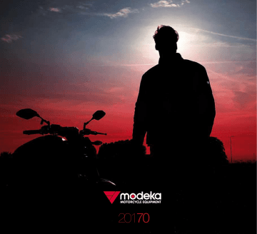 20170 Okrągła rocznica! Radość jest ogromna: świętujemy siedemdziesięciolecie firmy Modeka – bez Was nie byłoby to możliwe. Bardzo Wam dziękujemy! Być może niektórzy z Was pamiętają pierwsze, kolorowe kombinezony skórzane Modeki? Piękne czasy... W sezonie 2017 znów wnosimy sporo kolorów do naszej kolekcji. I oczywiście... nie mogło zabraknąć jubileuszowej kurtki. Jest specjalna, bo dedykowana człowiekowi, od którego wszystko się zaczęło, naszemu założycielowi Augustowi Oberkönig. Odkryjcie nową skórzaną kurtkę w stylu vintage – August 70! Przygotowaliśmy również wiele innych nowości na ten sezon. Po więcej szczegółów zapraszamy na strony tego katalogu. Świętujcie z nami. My świętujemy z Wami! Modeka Team Odzież męska Zestawy z membraną Sympatex® Kurtki tekstylne turystyczne Kurtki tekstylne sportowe Linia Urban Wear Spodnie tekstylne Jeansy Urban Wear Odzież skórzana 04-13 14-27 28-37 38-47 48-55 56-59 60-65 Odzież damska Zestawy z membraną Sympatex® Kurtki tekstylne Kurtki Urban Wear Spodnie tekstylne Jeansy Urban Wear Odzież skórzana 66-67 68-79 80-83 84-87 88-89 90-91 Odzież dziecięca Protektory Rękawice Buty Akcesoria Kaski Tabela rozmiarów Indeks alfabetyczny 92-93 94-97 98-113 114-125 126-145 138-143 146 147 3 Kurtka Tourrider Art.: 010720 | Cena: 1.790,00 zł Wysokiej jakości skóra bydlęca nappa o grubości ok. 1,1 – 1,3 mm | TFL Cool System® | Wstawki elastyczne Schoeller® Keprotec® | Materiał odblaskowy 3M™ Scotchlite™ | Zamki wentylacyjne AirVent | Wypinana membrana Sympatex®: wodoodporna, wiatroodporna, oddychająca, dynamicznie regulująca temperaturę | Protektory barkowe i łokciowe SAS-TEC® certyfikowane wg EN 1621-1:2012 | Protektor plecowy SAS-TEC® certyfikowany wg EN 1621-2:2014, spełnia poziom ochrony 2 | 2 Kieszenie zewnętrzne, 1 Wodoodporna kieszeń wewnętrzna | Zamek łączący ze spodniami | Bezpieczne szwy Rozmiary: 48 - 66, Przedłużane: 98 - 110 Rozmiary 58 – 66 –1890,00 zł Kolor: czarny Spodnie Tourrider Art.: 022280 | Cena: 1.590,00 zł Wysokiej jakości skóra bydlęca nappa o grubości ok. 1,1 – 1,3 mm | TFL Cool System® | Wstawki elastyczne Schoeller® Keprotec® | Panele odblaskowe | Zamki wentylacyjne AirVent | Wypinana membrana Sympatex®: wodoodporna, wiatroodporna, oddychająca, dynamicznie regulująca temperaturę | Protektory kolanowe SAS-TEC® spełniające poziom ochrony 2 | Biodrowe protektory SAS-TEC spełniają normę bezpieczeństwa EN 1621-1:2012 | Zamek łączący z kurtką | Bezpieczne szwy Rozmiary: 48 - 64, Przedłużane: 98 - 114, Skracane: 25 - 31 Rozmiary 58 – 64 –1690,00 zł Kolor: czarny Zestawy z membraną Sympatex® WODOSZCZELNA, SKÓRZANA KURTKA TURYSTYCZNA - WIELOKROTNIE NAGRADZANA Motorradfahrer (1/2014): „Doskonale wyposażony, dwuczęściowy, oferuje pełny zestaw protektorów, wysoki komfort użytkowania i ochronę przed deszczem.” Motorrad News (7/2013): “Dzięki wypinanej membranie, dużej ilości wlotów wentylacyjnych, systemowi TFL, pełnemu zestawowi protektorów i odblaskom – komplet Modeki wygrywa w zakresie komfortu termicznego i wyposażenia.” Motorrad (10/2012): “Perfekcyjna jakość wykonania, która przekonuje w 100%.” T E S T S I E G E R HEFT: 1/2014 Heft: 7/2013 Heft: 10/2012 5 Kurtka Kolumbus Art.: 084100 | Cena: 1.990,00 zł Wyjątkowo odporny na ścieranie materiał zewnętrzny Kenytex® (12% KEVLAR® DuPont™, 88% poliester) | Wzmocnienia SuperFabric® na ramionach i łokciach | Panele wentylacyjne na kieszeniach piersiowych (Air Draft Technology) | Zamki wentylacyjne AirVent | Materiał odblaskowy 3M™ Scotchlite™ | Wypinana membrana Sympatex®: wodoodporna, wiatroodporna, oddychająca, dynamicznie regulująca temperaturę | Wypinane ocieplenie | Protektory barkowe i łokciowe SAS-TEC® certyfikowane wg EN 1621-1:2012 | Protektory łokciowe z regulacją wysokości | Protektor plecowy SAS-TEC® certyfikowany wg EN 1621-2:2014, spełnia poziom ochrony 2 | 2 Wodoodporne kieszenie zewnętrzne, 1 Wodoodporna kieszeń wewnętrzna | Zamek łączący ze spodniami | Bezpieczne szwy Rozmiary: M - 4XL Kolor: czarny Spodnie Kolumbus Art.: 085130 | Cena: 1.540,00 zł Wyjątkowo odporny na ścieranie materiał zewnętrzny Kenytex® (12% KEVLAR® DuPont™, 88% poliester) | Niepalne wstawki z KEVLARu® DuPont™ na łydkach | Materiał odblaskowy 3M™ Scotchlite™ | Zamki wentylacyjne AirVent | Wypinana membrana Sympatex®: wodoodporna, wiatroodporna, oddychająca, dynamicznie regulująca temperaturę | Wypinane ocieplenie | Certyfikowane protektory kolanowe Sas-Tec z regulacją wysokości, spełniają poziom ochrony 2 | Biodrowe protektory SAS-TEC spełniają normę bezpieczeństwa EN 1621-1:2012 | Odpinane szelki | 2 Kieszenie zewnętrzne | Materiał antypoślizgowy | Zamek łączący z kurtką | Bezpieczne szwy Rozmiary: M - 4XL, przedłużane: LL-LXL, skracane: KL-KXL Kolor: czarny Zestawy z membraną Sympatex® Motorrad und Reisen Toptipp (75/2016): „Wszystko mający komplet Kolumbus to doskonały i wygodny zestaw turystyczny, który spełnia najwyższe wymogi bezpieczeństwa, sprawdzi się w każdych warunkach pogodowych a przy tym dobrze wygląda. Trzy rodzaje odzieży w jednym, wygodny, bezpieczny a dzięki ładnym i dopracowanym detalom dobrze się prezentuje.” HEFT: 75/2016 Rasowa kurtka trójwarstwowa typu adventure zapewniająca najwyższy poziom bezpieczeństwa 7 Kurtka trójwarstwowa typu adventure wyposażona w panele wentylacyjne z Cordury® AFT Motorrad News (5/2013): „Modeka wyposażając kombinezon w przewiewną dzianinę Cordura AFT otworzyła niejako cały system wentylacji, natomiast za komfort termiczny uczyniła odpowiedzialnymi wypinane warstwy wewnętrzne: membranę i softshell.” Heft: 5/2013 Enduro (1/2013): „Kurtka świetnie wyposażona pod kątem bezpieczeństwa.“ Heft: 1/2013 Bluza softshell do noszenia osobno Zestawy z membraną Sympatex® Kurtka AFT-Touring Art.:
