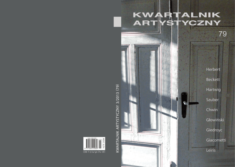 79 Herbert INDEKS 36294 CENA 1 1 zł (w tym 5% VAT) KWARTALNIK AR TYSTYCZNY 3/2013 (79) Beckett Hartwig Szuber Chwin Głowiński Giedroyc Giacometti Leiris ZESPÓŁ: Adam Bednarek, Jan Błoński , Stefan Chwin, Aleksander Fiut, Michał Głowiński, Marek Kędzierski, Julian Kornhauser, Leszek Szaruga REDAKCJA: Krzysztof Myszkowski – redaktor naczelny Paweł Tański – sekretarz redakcji Barbara Dąbrowa – biuro redakcji 3 /2013 79 K U J A W Y Zbigniew Herbert Samuel Beckett Julia Hartwig Julia Hartwig Janusz Szuber Stefan Chwin Bogusław Kierc Michał Głowiński Jacek Łukasiewicz I P O M O R Z E 6 11 21 22 23 35 39 53 54 55 57 68 69 70 R O K Kamień w Jeruzalem Nienazywalne (fragment) Odjęta była jedyność Tylko współczesny artysta Dziennik (fragment) Siedem miniatur dla Leszka Rózgi Ukrainki (fragment powieści) Niby Rdz 32, 25–31 // Ta kartka Przelotne // Cavallini Wróble Wędrówka Ciała (ekspozycja) Abraham Corneliusz Begayn (1635 Lejda–1657 Berlin): Stilleben mit Distel und Vogel Hendrick Avercamp (1585–1634) Kupferstichkabinett, Kolorowe rysunki (wystawa) MOI MISTRZOWIE Janusz Szuber 71 Leszek A. Moczulski 73 Renata Gorczyńska 74 Jerzy Giedroyc Kazimierz Brakoniecki 79 104 105 Listy do Renaty Gorczyńskiej Stopy Jezusa na sklepieniu kościoła ewangelickiego w Sorkwitach // Do Wenus i Jowisza Czaple kołujące nad jeziorem Kielarskim PO CO LITERATURA? Kazimierz Brakoniecki 106 108 Krzysztof Lisowski Krystyna Rodowska 109 X X Agnieszka Kosińska Krystyna Rodowska Iwona Smolka Susana Szwarc Ivan Oñate Paweł Tański Krzysztof Lisowski Janusz Skuczyński Piotr Piaszczyński Alberto Giacometti Michel Leiris Stefan Chwin Michał Głowiński Krzysztof Myszkowski Leszek Szaruga Piotr Szewc Julia Hartwig Piotr Sobolczyk Maciej Wróblewski Anna Nasiłowska Noty o autorach Noty o książkach Nowe książki 113 120 121 122 123 131 133 134 135 137 143 144 145 147 160 161 Czas i los (fragment) Arcanum Kot Dialogu // Paradoks królem Bez wydruku // Krotochwila Na uwięzi rzeczy niewidzialnych Na straży Psychoanaliza szczęścia Kości Cezara Vallejo Ars Poetica U podstaw liryki Władysława Sebyły Kenoma Noc w zimie O czym będziemy rozmawiać przy Wigilii? W stronę pytań o wspólnotę Stille Nacht // Kościół sióstr Klarysek w Kolonii Apocalypse Now! 163 173 Trzy teksty Alberto Giacometti VARIA 176 180 183 192 197 RECENZJE 203 206 214 219 229 232 246 Wprowadzenie do dyskusji „Zło – doświadczenie i literatura” Małe szkice Addenda (30) Jazda (27) Z powodu i bez powodu (32) Celan Krynickiego Gombrowicz bez marynarki i z marynarzem Dar życia i „grzech istnienia” Herbert – przyjaciel Dnia 15 sierpnia 2013 roku zmarł w Nicei ś p. Sławomir Mrożek pisarz R. I. P. Michał Kapitaniak ZBIGNIEW HERBERT Kamień w Jeruzalem Obojętny wobec losów swoich doczesnych członków zupełnie obojętny wobec losów pozostawionych w nieładzie rękopisów chciałbym jeśli to nie za duży zaszczyt mieć grób w Jeruzalem wśród oliwek innych kamieni na pagórku na pokuszenie słońca niech jeśli łaska zjawią się na pogrzeb Dawid mój 6 cierpliwy nauczyciel mowy proroków a także Jehuda poeta lew Judei mój brat Dan nie przyjdzie bo umarł a zatem jest mi bliski na wieczność a także paru przyjaciół z Polski proszę o kadisz w mowie moich przodków mego przyjaciela Ala niech powie z pamięci jeśli łaska poeta Rühmkorf z Hamburga niech odczyta w swojej zimnej pracowni na ostatnim piętrze brzydkiej kamienicy swój wiersz …………………. poeta Josif Brodski niech [się] weseli i życzy mi spokoju 7 Kasię – która była mi wierna niech da św. Annie Boskiej na chleb dla ubogich bo nie czyniłem [tego?] za życia dostatecznie często myślę że nie pominąłem nikogo Do druku podał Ryszard Krynicki © Copyright by Katarzyna Herbert i Halina Herbert-Żebrowska Archiwum Zbigniewa Herberta – w posiadaniu Biblioteki Narodowej w Warszawie 8 Nota Brulion (jedyny zachowany autograf) wiersza Kamień w Jeruzalem znajduje się w Notatniku 141 (strona 43), opisanym na okładce ręką poety: 1990/91 VIII Paryż / BERLIN NIZZA. Poza datą „1990” opis jest prawie nieczytelny, zapewne dlatego Inwentarz Archiwum Zbigniewa Herberta jedynie ją podaje w opisie. Zresztą sam rękopis jest na tyle trudno czytelny, że tytułu: Kamień w Jeruzalem nie ma w Indeksie utworów Zbigniewa Herberta. W notatniku ten niedokończony wiersz znajduje się pomiędzy rękopisami utworów Contra Augustinum Pontificem In Terra Nubica Percatorem In Purgatorio (napisanego w Ferrarze 20/21 X 1990) i Rovigo, napisanego również w październiku tego roku, podczas dwudziestodniowej (sądząc z zapisu na stronie 49 verso) podróży poety po Włoszech. Można by z tego wnioskować, iż Kamień w Jeruzalem został napisany także w tym czasie, chociaż bardziej prawdopodobne wydaje mi się, że powstał raczej w czasie podróży Herberta do Jerozolimy (koniec kwietnia/maj 1991 roku) lub wkrótce po powrocie do Paryża, latem tego roku, podobnie jak pozostały także jedynie w rękopisie utwór *** (Szukam wierszy Dana Pagisa...) (zob. Utwory rozproszone/Rekonesans, s. 280 oraz przypis, s. 411). Dawid – to jak łatwo się domyślić David Weinfeld, tłumacz poezji autora Pana Cogito na język hebrajski; Jehuda i Dan to Jehuda Amichaj (1924–2000) oraz Dan Pagis (1930–1986), izraelscy poeci, bliscy Herbertowi. Al – to zapewne Aleksander Schenker, adresat dedykacji w wierszu Mitteleuropa w tomie Rovigo, w którym mogłyby się znaleźć również utwory *** (Szukam wierszy Dana Pagisa...) i Kamień w Jeruzalem, gdyby zostały ukończone. Natomiast „poeta Rühmkorf z Hamburga” to oczywiście Peter Rühmkorf (1929–2008), niemiecki poeta i eseista, w Polsce, jak dotąd, mało znany. R.K. 9 Marek Kędzierski SAMUEL BECKETT Nienazywalne1 (fragment) w przekładzie Marka Kędzierskiego Nie będę sam, na początku. Rzecz jasna, jestem sam. Sam. Krótkie słowo. Prędko się mówi. T