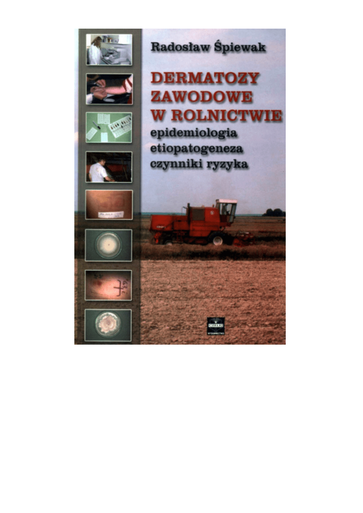 Radosław Śpiewak DERMATOZY ZAWODOWE W ROLNICTWIE epidemiologia etiopatogeneza czynniki ryzyka Wersja elektroniczna monografii udostępniona za pośrednictwem serwisu www.dermatozy.pl © Radosław Śpiewak. Treść i forma niniejszego opracowania stanowią utwór chroniony prawem autorskim. Autor udziela osobom fizycznym zgody na nieodpłatne wykonanie jednej kopii elektronicznej (plik) lub papierowej (wydruk) niniejszego dzieła i korzystanie z niej wyłącznie w celach osobistych nie noszących znamion działalności komercyjnej (w tym szkoleniowej). Powyższa zgoda udzielona jest wyłącznie pod warunkiem nie wprowadzania jakichkolwiek zmian do utworu (w tym usuwania informacji o autorze i prawach autorskich). Kopiowanie i rozpowszechnianie niniejszego utworu w celach komercyjnych i edukacyjnych, a także wykorzystanie przez osoby prawne, firmy oraz instytucje wymaga pisemnej zgody autora. Kontakt: www.RadoslawSpiewak.net Uwaga: Autor dołożył wszelkich starań, aby treść niniejszego utworu była zgodna ze stanem wiedzy w chwili pisania. Jednak codziennie dokonywane są nowe odkrycia naukowe, a regulacje prawne ulegają zmianom. Dlatego autor wyklucza jakąkolwiek odpowiedzialność cywilno-prawną za szkody bezpośrednio lub pośrednio wynikłe z zastosowania informacji zawartych w niniejszym utworze. Rozprawa na stopień doktora habilitowanego nauk medycznych wykonana w Zakładzie Biologicznych Szkodliwości Zawodowych Instytutu Medycyny Wsi w Lublinie (kierownik: prof. dr hab. n. med. Jacek Dutkiewicz), Klinice Dermatologii i Alergologii Reńsko-Westfalskiej Wyższej Szkoły Technicznej w Akwizgranie (kierownik: prof. dr med. Hans F. Merk) oraz Dziale Prewencji Regionalnego Instytutu Medycyny Pracy w Kuopio (kierownik: dr med. Päivikki Susitaival). Rozprawa obroniona 17.04.2003 przed Radą Wydziału Lekarskiego AM w Lublinie. Nagrodzona 26.11.2003 przez Prezesa Kasy Rolniczego Ubezpieczenia Społecznego. Monografia przedstawia wyniki badań finansowanych przez: • • • Komitet Badań Naukowych (Grant 6 P05D 028 20 pt. „Czynniki ryzyka zawodowych chorób układu oddechowego i skóry wśród absolwentów rolniczych szkół zawodowych”, kierownik: dr n. med. Radosław Śpiewak), Instytut Medycyny Wsi w Lublinie (Tematy statutowe nr 1.8/98 pt. „Choroby skóry u rolników wywołane przez czynniki miejsca pracy” i nr 1.8/01 pt. „Pogłębiona analiza przyczyn zawodowych chorób skóry u rolników”, kierownik: dr n. med. Radosław Śpiewak), Rząd Fiński (Stypendium CIMO KM1 116/2001 na pobyt studyjny w Instytucie Medycyny Pracy w Kuopio, koordynator: dr med. Päivikki Susitaival). Recenzent monografii: Recenzenci w przewodzie habilitacyjnym: Skład i łamanie: Korekta: Projekt okładki: Zdjęcia na okładce: Projekt ryc. 2.1.1.–2.1.3.: prof. dr hab. n. med. Jacek Dutkiewicz prof. dr hab. n. med. Krystyna Obtułowicz prof. dr hab. n. med. Waldemar Placek prof. dr hab. n. med. Wojciech Silny Jan Retyk Patrycja Mikulska, Anna Góra Paweł Kaniuk Radosław Śpiewak Tomasz Romski © Radosław Śpiewak Wszystkie prawa autorskie zastrzeżone ISBN 83-88063-81-2 Wydanie I, nakład 250 egz. Lublin 2002 Wydawnictwo CZELEJ Sp. z o. o. Wykaz skrótów stosowanych w pracy 95%PU 95% przedział ufności ACNN alergiczny całoroczny nieżyt nosa AKZS alergiczne kontaktowe zapalenie skóry ASNN alergiczny sezonowy nieżyt nosa AZS atopowe zapalenie skóry EAACI Europejska Akademia Alergologii i Immunologii Klinicznej (European Academy of Allergology and Clinical Immunology) ELISPOT immunologiczna metoda wizualizacji komórek wydzielających w hodowli określone cytokiny (enzyme-linked immunospot assay) IFN-γγ interferon γ IgE immunoglobulina E IL-5 interleukina 5 IL-10 interleukina 10 KRUS Kasa Rolniczego Ubezpieczenia Społecznego KZSzP kontaktowe zapalenie skóry z podrażnienia MIF czynnik hamujący migrację makrofagów (migration inhibitory factor) sIgE swoista immunoglobulina E STP skórne testy punktowe tIgE całkowite stężenie immunoglobuliny E TZM test zahamowania migracji WPD wartość predyktywna dodatnia WPU wartość predyktywna ujemna Spis treści 1. Wstęp 1.1. Dermatozy zawodowe w rolnictwie – problem niedostrzegany 10 1.2. Definicje 11 1.3. Przegląd piśmiennictwa na temat epidemiologii dermatoz zawodowych w rolnictwie 15 1.4. Przegląd piśmiennictwa na temat etiopatogenezy dermatoz zawodowych w rolnictwie 18 1.5. Przegląd piśmiennictwa na temat czynników ryzyka dermatoz zawodowych w rolnictwie 22 1.6. Określenie strategii badań własnych ukierunkowanych na uzupełnienie obecnego stanu wiedzy 23 2. Badania nad w rolnictwie zawodowych 25 2.1. Opracowanie statystyki dermatoz zawodowych wśród rolników indywidualnych w latach 1991–1999 25 2.1.1. Cel badań 26 2.1.2. Materiał i metodyka 26 2.1.3. Wyniki 27 Badania nad rozpowszechnieniem dolegliwości i chorób skóry prowokowanych przez pracę w losowej próbie rolników 37 2.2.1. Cel badań 37 2.2.2. Materiał i metodyka 37 2.2.3. Wyniki 38 2.2. 3. Badania nad w rolnictwie 9 epidemiologią etiopatogenezą dermatoz dermatoz zawodowych 43 6 3.1. 3.2. 3.3. 3.4. 3.5. Radosław Śpiewak: Dermatozy zawodowe w rolnictwie Badania nad i glebowych znaczeniem dermatofitów odzwierzęcych 44 3.1.1. Cel badań 44 3.1.2. Materiał i metodyka 44 3.1.3. Wyniki 45 Badania nad rolą nadwrażliwości na alergeny roślin uprawnych i mikroorganizmów środowiskowych w etiopatogenezie prowokowanych przez pracę objawów i chorób skóry u plantatorów chmielu 52 3.2.1. Cel badań 52 3.2.2. Materiał i metodyka 52 3.2.3. Wyniki 55 Badania nad znaczeniem nadwrażliwości humoralnej i komórkowej na antygeny roślin uprawnych oraz mikroorganizmów środowiskowych w etiopatogenezie dermatoz zawodowych u producentów tymianku 64 3.3.1. Cel badań 64 3.3.2. Materiał i metodyka 64 3.3.3. Wyniki 67 Badania nad rolą nadwrażliwości na alergeny zwierząt hodowlanych w etiopatogenezie dermatoz zawodowych u rolników 73 3.4.1. Cel