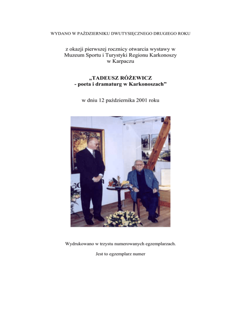 TADEUSZ RÓŻEWICZ - Muzeum Sportu i Turystyki w Karpaczu