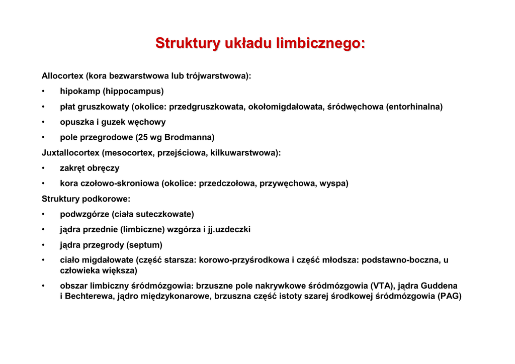 • bezpośredni wpływ na funkcje wegetatywne i endokrynne podwzgórza