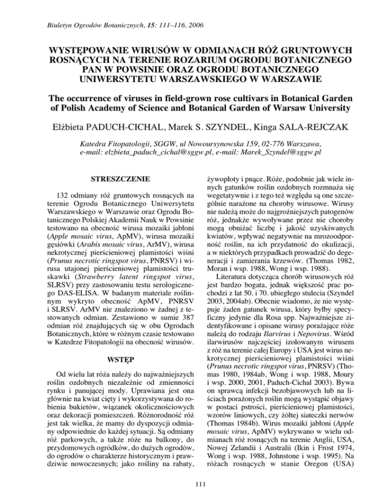 wyst¢powanie wirusów w odmianach ró˚ gruntowych rosnńcych na