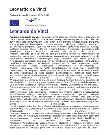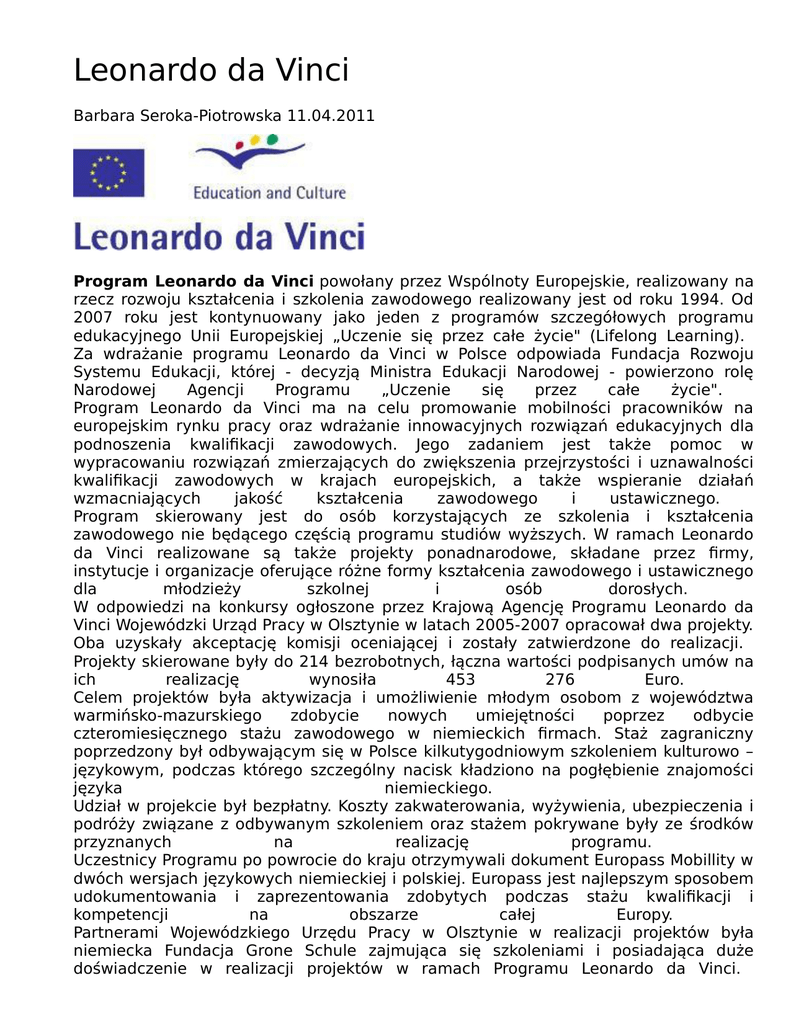 Leonardo da Vinci - Wojewódzki Urząd Pracy w Olsztynie