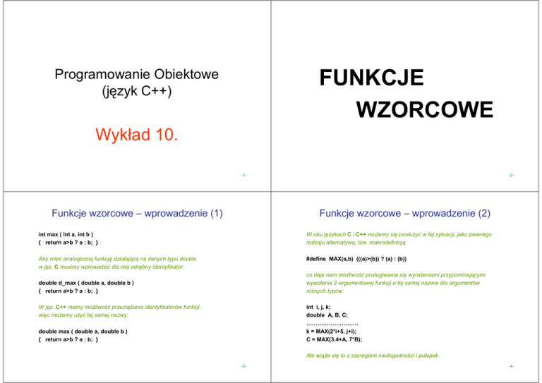 1. Wzorzec funkcji moŜe mieć więcej parametrów (ale nie mniej niŜ jeden!).
