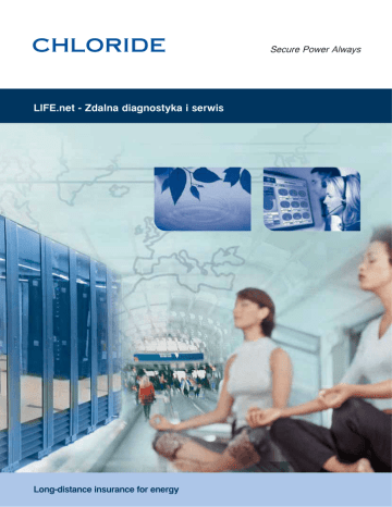 Secure Power Always LIFE.net - Zdalna diagnostyka i serwis Long-distance insurance for energy Zdalny nadzór LIFE 24/7 zapewniajàcy ca∏kowity spokój ducha Chloride, od teraz, odpowiada za stan wszystkich zasilaczy UPS 24 godziny na dob´. System zdalnego monitoringu LIFE.net 24/7 tworzy nowà jakoÊç dzi´ki mo˝liwoÊci identyfikowania, diagnozowania i usuwania problemów z urzàdzeniami UPS Chloride oraz innych marek. LIFE.net to dwukierunkowy, dzia∏ajàcy przez 24 godziny na dob´, przez ca∏y rok, system komunikacji, zaprojektowany z myÊlà o zdalnym diagnozowaniu, monitorowaniu i zarzàdzaniu stanem urzàdzenia UPS oraz systemów dystrybucji zasilania poprzez ogólnodost´pne sieci. LIFE.net oferuje wczesne ostrzeganie o wszelkich stanach alarmowych lub wykraczajàcych poza granice tolerancji, pozwalajàc na przeprowadzenie proaktywnej konserwacji, umo˝liwiajàc szybkà reakcj´ na zdarzenia i zapewniajàc tym samym naszym klientom na ca∏ym Êwiecie bezpieczeƒstwo i spokój ducha. Maksymalizacja dost´pnoÊci Minimalizacja przestojów Redukcja kosztów eksploatacji Konserwacja prewencyjna LIFE.net umo˝liwia wczesne ostrze˝enia dotyczàce ponad 150 ró˝nych parametrów, pozwalajàc na prowadzenie diagnostyki w czasie rzeczywistym oraz szybkà identyfikacj´ i usuwanie anomalii operacyjnych. Natychmiastowa identyfikacja problemów W przypadku wystàpienia sytuacji awaryjnej, in˝ynier firmy Chloride z dzia∏ajàcego 24 godziny na dob´ przez 7 dni w tygodniu Centrum Serwisowego przeprowadzi natychmiastowà analiz´ problemu i wska˝e odpowiednie dzia∏ania naprawcze. Doskona∏e zarzàdzanie zasobami Dzi´ki pe∏nemu gromadzeniu danych i ich analizie, szczegó∏owy system raportowania LIFE.net dostarcza cennych informacji na temat trendów zwiàzanych z zapotrzebowaniem na zasilanie oraz wyposa˝enia z dowolnego przedzia∏u czasowego. LIFE - sposoby komunikacji Linia telefoniczna Sieç GSM Internet LIFE.net: najnowoczeÊniejsze us∏ugi spe∏niajàce wszystkie wymagania Monitoring Mon LIFE.net zapewnia sta∏e monitorowanie linii ito zasilajàcej oraz ponad 150 ró˝nych parametrów W okreÊlonych odst´pach czasu lub w przypadku wystàpienia alarmu, UPS ∏àczy si´ z Centrum Serwisowym LIFE.net wysy∏ajàc raport o swoim statusie. Umo˝liwia to in˝ynierom Ra po r przez 24 godziny na dob´, 7 dni w tygodniu. rin ty g serwisu natychmiastowà diagnoz´ problemu oraz podj´cie dzia∏aƒ naprawczych. serwisowej. Analiza zarzàdzania jakoÊcià zasilania LIFE.net dostarcza szczegó∏owych informacji na temat alarmowego. przyczyny Pozwala ka˝dego to stanu w oz g∏ównym narz´dziem naszej zintegrowanej oferty an iàz przeprowadzednia ich analizy, LIFE.net staje si´ zidentyfikowaç mo˝liwe przysz∏e problemy, a tak˝e dostarcza R danych na temat zdarzeƒ, a nast´pnie mo˝liwoÊci ie Dzi´ki gromadzeniu zapisów parametrów oraz Diagnostyka Cykl LIFE Diagnostyka informacji na temat trendów jakoÊci zasilania. Wsparcie Wsparci e LIFE.net to monitoring systemu UPS realizowany przez ekspertów pracujàcych w Centrum Serwisowym przez 24 godziny na dob´, 365 dni w roku. In˝ynierowie dost´pni sà bez przerwy, Êwiadczàc skuteczne wsparcie serwisowe, a tak˝e spe∏niajàce zró˝nicowane potrzeby klientów. Dodatkowo dost´pna jest tak˝e wyjàtkowa us∏uga powiadamiania Klienta o awarii zasilania. Us∏uga realizowana przez 24 godziny na dob´, 7 dni w tygodniu pozwala na podj´cie natychmiastowych dzia∏aƒ, takich jak roz∏o˝enie obcià˝enia czy te˝ kontrolowane wy∏àczenie odbiorów. Raporty Rozwiàzanie LIFE.net regularnie generuje raporty o statusie W przypadku wystàpienia sytuacji awaryjnej, dzia∏ wsparcia technicznego LIFE.net otrzymuje potwierdzeniem dla Klienta, ˝e UPS znajduje si´ pod natychmiastowo raport o awarii. Operator LIFE.net natychmiast przeprowadza analiz´, a nast´pnie okreÊla sta∏ym zdalnym nadzorem. Regularne raporty dzia∏ania jakie serwis Chloride musi podjàç. Kolejnym krokiem jest kontakt z klientem w celu ustalenia zawierajàce podsumowanie zdarzeƒ alarmowych sà w∏aÊciwego sposobu post´powania zmierzajàcego do usuni´cia problemu. Za pomocà elektronicznego dostarczane Klientom poprzez e-mail. Klient ma wi´c wykrywania i usuwania usterek (ETS), LIFE.net automatycznie generuje list´ stanów alarmowych oraz mo˝liwoÊç weryfikacji parametrów pracy i zdarzeƒ, wykaz mo˝liwych rozwiàzaƒ. Umo˝liwia to szybkie zidentyfikowanie i usuni´cie wszelkich mo˝liwych a tak˝e cz´stotliwoÊç ich wyst´powania oraz czas anomalii pojawiajàcych si´ w czasie pracy monitorowanych urzàdzeƒ. W razie koniecznoÊci, w celu trwania. usuni´cia awarii, na miejsce wys∏any zostaje in˝ynier serwisu. monitorowanych urzàdzeƒ. Pozwalajà one stwierdziç czy UPS dzia∏a prawid∏owo, jak równie˝ sà Secure Power Always LIFE over IP: nowa generacja przyjaznej dla Êrodowiska zdalnej diagnostyki IT LIFE over IP przekszta∏ca fizycznie istniejàce linie wykorzystywane przez system LIFE.net z linii telefonicznych w infrastruktur´ sieciowà. W celu umo˝liwienia przekazywania informacji poprzez sieç, dzia∏anie systemu jest ÊciÊle dopasowane do najbardziej rozpowszechnionego standardu komunikacji internetowej - protoko∏u http. Umo˝liwia to komunikacj´ UPS z centrami LIFE firmy Chloride poprzez Internet. LIFE over IP to rozwiàzanie przyjazne dla Êrodowiska IT; oznacza to, ˝e zastosowanie protoko∏u http zapobiega jego odrzucaniu przez wi´kszoÊç zabezpieczeƒ zainstalowanych w zaporach ogniowych stosowanych w komputerach firmowych, bez potrzeby wykonania jakichkolwiek r´cznych interwencji przez firmowych administratorów sieci. LIFE over IP zapewnia bezpieczeƒstwo bez koniecznoÊci nowych inwestycji: • Brak koniecznoÊci wprowadzania zmian w istniejàcej architekturze IT • Wykorzystanie standardowego protoko∏u HTTP • ZgodnoÊç z proxy • Obs∏uga DHCP • Brak sta∏ego IP • Brak VPN • Bra