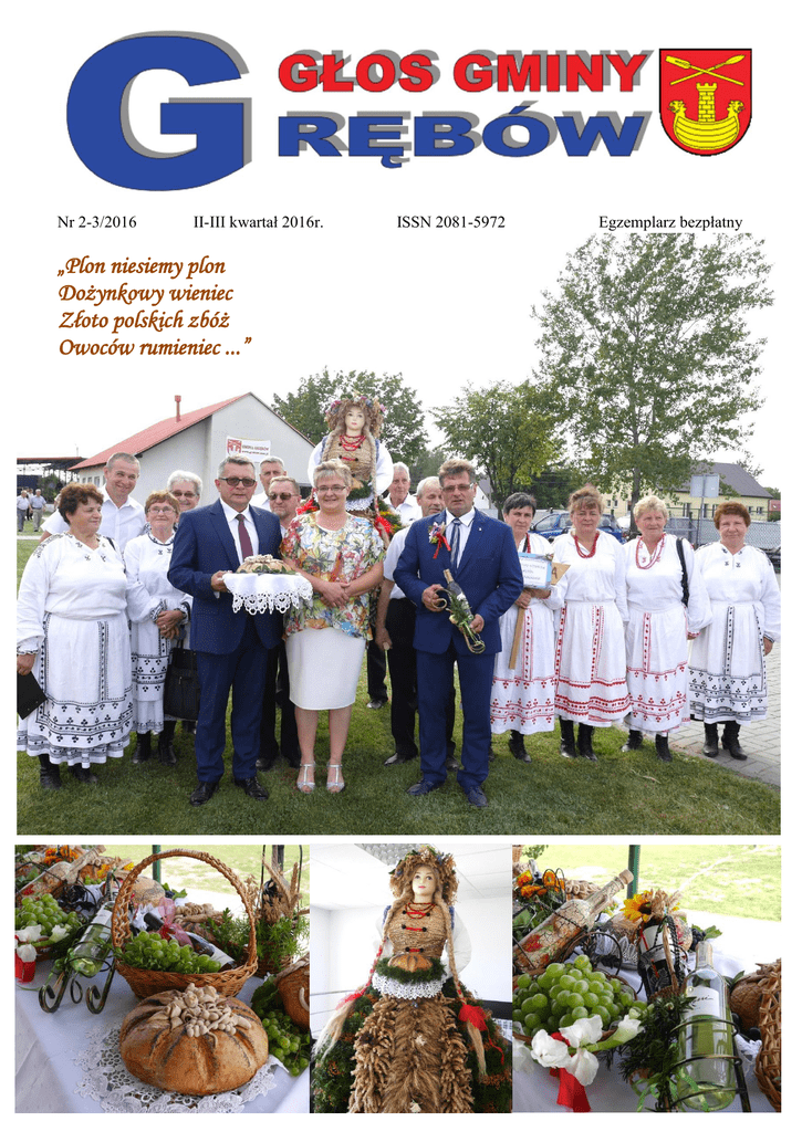 Nr 2-3/2016 II-III kwartał 2016r. „Plon niesiemy plon Dożynkowy wieniec Złoto polskich zbóż Owoców rumieniec ...” ISSN 2081-5972 Egzemplarz bezpłatny 2 10 czerwca 2016 r. odbyła sesja absolutoryjna Rady Gminy Grębów. Obrady odbyły się w Gminnym Centrum Kultury w Grębowie, była to już się XVII sesja VII kadencji. Najważniejszym punktem obrad było rozpatrzenie przez Radę Gminy wniosku Komisji Rewizyjnej o udzielenie absolutorium Wójtowi Gminy Grębów za rok 2015. Głosowanie w sprawie udzielenia absolutorium poprzedzone było zatwierdzeniem sprawozdań finansowych Gminy i jednostek organizacyjnych gminy posiadających osobowość prawną, informacji o stanie mienia komunalnego oraz sprawozdania opisowego z wykonania budżetu Radni ocenili jak wyglądała realizacja budżetu za ubiegły rok, czy zaplanowane przychody i wydatki na inwestycje są właściwe. Radni sprawdzili też, czy cele postawione wcześniej przez Radę Gminy zostały zrealizowane. Na temat budżetu jego realizacji szeroko wypowiadała się skarbnik gminy Grażyna Ożga, która stwierdziła m.in. że dochody budżetu na 2015 planowane w kwocie 29 272 810,20 zł zostały wykonane w kwocie 30 693 782,72 zł co stanowi 104,85%, natomiast wydatki budżetowe zrealizowane w 2015r. zamknięto w kwocie 28 842 304,93 zł na plan 30 407 029,20 zł, co stanowi 94,85%. Wydatki majątkowe planowane w kwocie 3 911 340,70 zł wykonano w kwocie: 3 565 638,64 zł. Gmina posiada zobowiązania, które na dzień 31.12.2015 stanowią 20,43% wykonanych dochodów. Po wysłuchaniu powyższych informacji radni jednogłośnie w głosowaniu jawnym opowiedzieli się za udzieleniem Wójtowi Gminy Panu Kazimierzowi Skórze absolutorium za rok 2015. Potwierdzenie udzielenia absolutorium były bardzo przychylne opinie wyrażane przez radnych jak i sołtysów, którzy podkreślali, że dzięki dobrej współpracy i zrozumieniu można z powodzeniem realizować zamierzone cele, spełniając tym samym oczekiwania społeczne. Dziękując za udzielone absolutorium, Wójt Gminy podkreślił, że to należyta współpraca i jednomyślne współdziałanie z Radą Gminy, z Przewodniczącym Rady Gminy z sołtysami dało tak dobry efekt. Podziękowania skierował także do wszystkich pracowników Urzędu Gminy, do kierowników jednostek organizacyjnych, jak też do radnych powiatowych. Ważniejsze inwestycje zrealizowane w 2015r. zakończono budowę kanalizacji sanitarnej w Żupawie, powstało ok. 13 km sieci kanalizacji oraz 10 przepompowni ścieków, koszt budowy zamknął się w kwocie; 2 217 074,29 zł w tym dotacja z Urzędu Marszałkowskiego z PROW w wysokości 403 301,00 zł. zakończono budowę budynku szatniowego wraz z ciągiem pieszo – jezdnym na boisku w Zabrniu. Całkowita kwota zadania wynosi: 331 044,70 zł, w tym dofinansowanie ze środków unijnych: 200 072,00 zł wykonano remont pomieszczeń w remizie OSP Krawce wraz z remontem dachu za kwotę: 110 700,00 zł w tym dotacja Komendy Głównej PSP w Warszawie w kwocie: 25 000,00 zł zakończono przebudowę wejścia do remizo-świetlicy w Stalach wraz z wjazdami do garażu za kwotę: 33 900,00 zł remont posadzki i malowanie pomieszczeń OSP Grębów za kwotę: 33 100,00 zł utwardzenie placu przed budynkiem weterynarii w Grębowie za kwotę 25 830,00 zł utwardzono plac obok altanki w Wydrzy za 49 583, 76 zł zakończono budowę ogrodzenia wokół świetlicy w Zapoledniku za kwotę: 46 000,00 zł w ramach inwestycji drogowych przebudowano 6 odcinków dróg gminnych o długości ponad 4,8 km, za kwotę 905 808,00 zł brutto, m.in. drogę gminną Grębów-Sokół, Krawce-Sulechów, Stale –Osiedle i droga transportu rolnego Grębów-Zabrnie. Redakcja 3 SZANOWNA PANI TERESA JANUSZCZAK Z okazji przejścia na zasłużoną emeryturę z dniem 28 lipca 2016 roku Wójt Gminy Grębów wraz z pracownikami Urzędu Gminy składają Pani serdeczne podziękowanie za rzetelną, wieloletnią pracę zawodową i społeczną na rzecz samorządu terytorialnego Gminy Grębów. W życiu każdego z nas przychodzi chwila, kiedy podejmujemy jedną z najważniejszych decyzji dotyczących życia zawodowego, spoglądamy wstecz i staramy się dokonać podsumowania. U Pani ten zawodowy bilans przestawia się imponująco; ponad 40 lat pracy zawodowej, 36 lat pracy tylko w samym Urzędzie Gminy. To długi czas, który minął tak szybko. Były różne zadania, różne obowiązki m.in. na stanowisku ds. ewidencji ludności i zastępcy kierownika USC. Dziś, po przeszło 40 latach łącznej pracy zawodowej z pewnością można powiedzieć, że Pani praca w Urzędzie Gminy dała nie tylko mieszkańcom ale również i nam pracownikom, wiele dobrego. Może być Pani wzorem dla młodych urzędników, którzy rozpoczynają swoja pracę zawodową, ponieważ przez te lata dała się Pani poznać nie tylko jako wspaniała serdeczna koleżanka, ale przede wszystkim jako rzetelny i pełen zaangażowania profesjonalny urzędnik. Skrupulatnie i sumiennie wykonywała Pani swoje obowiązki. Ta rzesza ludzi, która odwiedzała ewidencję ludności, Urząd Stanu Cywilnego, ciągły ruch, wdrażanie nowych przepisów, procedur, programów i zasad nie sprawiały Pani większych kłopotów – zawsze miła, uśmiechnięta, energiczna ale też zatroskana i zaangażowana. Swojej pracy oddająca wiedzę i serce. Posiadała Pani ten niezwykły dar godzenia życie osobistego z pracą zawodową. Pani Tereniu! Dzisiaj nadszedł czas zasłużonego odpoczynku od pracy zawodowej, pora na urzeczywistnianie swoich pragnień, pasji, które do tej pory ustępowały miejsca powinnościom wykonywanej pracy zawodowej. To doskonały czas na realizację planów i zamierzeń, które dotychczas nie mogły się ziścić. Życzymy Pani zatem, siły i chęci potrzebnych do realizowania swoich planów i zamierzeń, pogody ducha, a nade wszystko zdrowia i wszelkiej pomyślności. Żywimy także nadzieję, że nie zapomni Pani o swoim miejscu pracy, o k