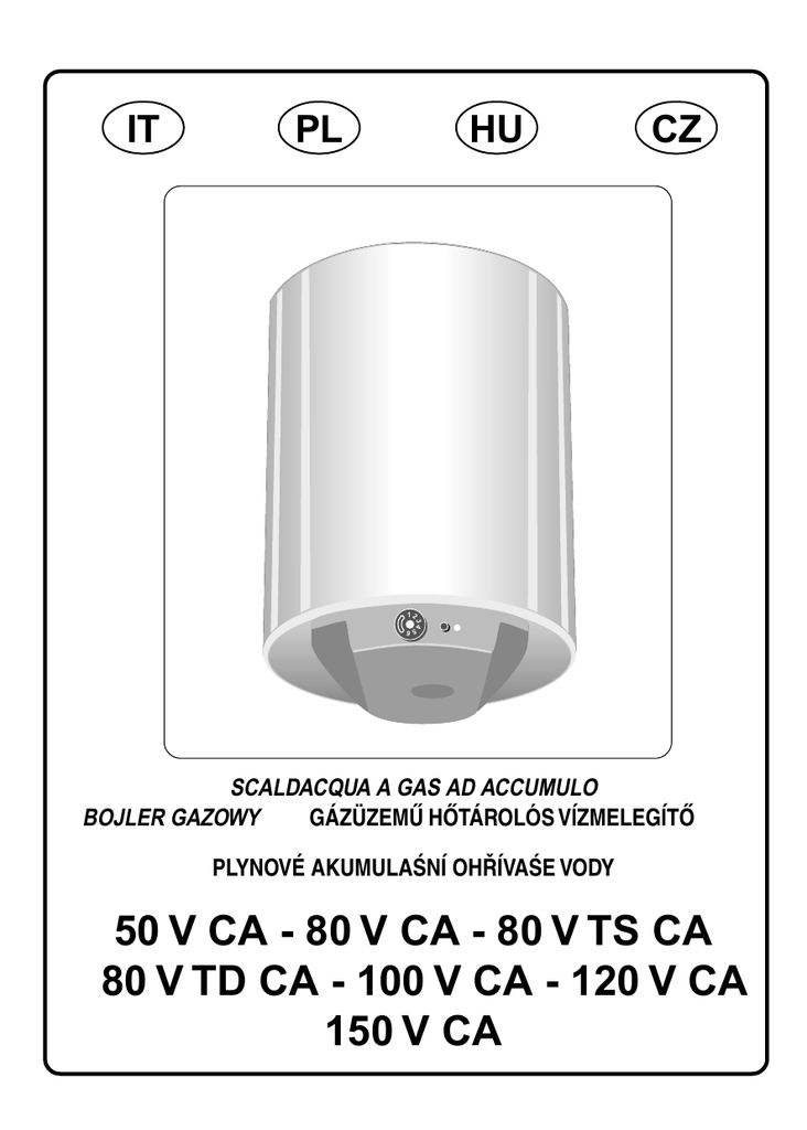 IT PL HU CZ 12 34 56 SCALDACQUA A GAS AD ACCUMULO BOJLER GAZOWY GÁZÜZEMŰ HŐTÁROLÓS VĺZMELEGĺTŐ PLYNOVÉ AKUMULAŚNÍ OHŘÍVAŚE VODY 50 V CA - 80 V CA - 80 V TS CA 80 V TD CA - 100 V CA - 120 V CA 150 V CA IT IT PER LA VOSTRA SICUREZZA In caso di odore di gas: 1. Chiudere immediatamente il rubinetto del gas. 2. Aprire le finestre 3. Non azionare interruttori elettrici o qualsiasi altra apparecchiatura elettrica. 4. Spegnere la fiamma pilota. 5. Richiedere immediatamente l'intervento di un tecnico dell'Azienda del gas. ATTENZIONE Non immagazzinare o impiegare materiali o liquidi infiammabili nelle vicinanze dell'apparecchio • L'installazione dell'apparecchio deve essere eseguita da un installatore specializzato. • Per garantire il funzionamento corretto dell'apparecchio ci si deve attenere scrupolosamente alle presenti istruzioni. • Il libretto in vostre mani contiene le istruzioni d'uso, di installazione e di manutenzione. • Gli interventi di manutenzione sono esclusiva competenza di personale specializzato. 3 IT CARATTERISTICHE TECNICHE L'apparecchio è costituito da: • • • • • • • • un serbatoio protetto internamente da uno strato di smalto vetrificato, dotato di un anodo di protezione contro la corrosione di lunga durata; un rivestimento esterno in lamiera verniciata; un isolamento in schiuma poliuretanica ad alta densità (senza CFC) che riduce le perdite termiche; una cappa fumi contro il riflusso dei gas di combustione; una valvola gas completa di: un termostato regolabile a più posizioni, un sistema di sicurezza a termocoppia, un limitatore di temperatura che interrompe l'alimentazione di gas in caso di funzionamento anomalo; un brhãiatore circolare silenzioso in acciaio inossidabile, adattabile a tutti i tipi di gas; un'accensione piezoelettrica; un dispositivo di sicurezza contro il riflusso di gas combusti. DATI TECNICI Modello Capacità Pressione nominale Portata termica nominale Potenza utile Tempo di riscaldamento t 45°C Dispersione di calore a 60° C Portata acqua calda erogazione a 30K erogazione a 45K 4 80V TS/TD CA I bar kW kW min. W 75 8 5,2 4,5 56 230 I/h l/h 129 86 Pressione di allacciamento gas Metano G20 Gas liquido (butano) G30 Gas liquido (propano) G31 mbar mbar mbar 20 30 37 Consumo di gas Metano G20 Gas liquido (butano) G30 Gas liquido (propano) G31 m3/h g/h g/h 0,550 0,638 410 Valori dei gas di combustione Pressione di tiraggio Quantità massica fumi Temperatura gas di scarico mbar g/sec °C 0,015 4,7 158 IT ISTRUZIONI PER L’INSTALLAZIONE A H F G 3/4 MV G MAX E min E max L B M = I c= D 1010/G DIMENSIONI D’INGOMBRO E Modello 80 A 495 B 490 CATEGORIA II2H3+ ; C 100 D 115 min. max. 150 310 F G H I L M 255 305 81 G3/4 292 184 Per apparecchi predisposti al funzionamento con gas naturale (metano) adattabili al funzionamento con gas liquido. 5 IT NORMATIVE APPLICABILI PER L'INSTALLAZIONE Eseguire l'installazione in conformità alle norme: - UNI-CIG 7129 - 7131 POSIZIONAMENTO 1.1. L'agganciamento a muro si effettua mediante dei robusti ganci precedentemente in- fissi sulla parete. Le distanze sono indicate nella tabella dimensioni d'ingombro. ALLACCIAMENTO IDRAULICO 2.1. L'allacciamento alla rete di distribuzione dell'acqua va realizzato con tubo da 3/4“ G. L'entrata dell'acqua fredda è a destra (anello azzurro), mentre l'uscita dell'acqua calda è a sinistra (anello rosso) guardando l'apparecchio. 2.2. L'apparecchio deve obbligatoriamente montare la valvola idraulica di sicurezza - ritegno (in corredo ad ogni apparecchio) sulla tubazione di arrivo acqua (anello azzurro). La valvola non deve essere in alcun modo manomessa. 2.3. Assicurarsi, facendo scorrere l'acqua per un certo periodo di tempo, che non vi siano nella tubazione di arrivo corpi estranei quali trucioli metallici, sabbia, canapa, ecc. Se tali corpi dovessero entrare nella valvola idraulica di sicurezza-ritegno ne pregiudicherebbero il buon funzionamento e, in qualche caso, ne potrebbero causare la rottura. 2.4. Assicurarsi che la pressione dell'impianto di erogazione dell'acqua non superi gli 8 bar (0.8 MPa). In caso di pressione superiore è obbligatorio l'impiego di un riduttore di pressione di elevata qualità. In tale caso la valvola idraulica deve necessariamente gocciolare nella fase di riscaldamento. Il gocciolamento deve verificarsi anche quando a monte della valvola è applicato un rubinetto d'arresto unidirezionale. ALLACCIAMENTO A TERMOSIFONE 2.5. A richiesta gli apparecchi (mod. 80) possono essere forniti con attacchi a termosifone sulla parte destra o sinistra dello scaldacqua. D 2.7. È opportuno montare una saracinesca sull'entrata (in alto) per l'arresto del flusso d'acqua del termosifone quando l'apparecchio funziona a gas (fig. D). 6 3110/G 2.6. Gli attacchi termo sono filettati 3/4” G. maschio. IT ALLACCIAMENTO GAS 3.1. L'allacciamento della tubazione del gas alla valvola deve avvenire con tubo da 1/2” G. 3.2. Si consiglia l'inserimento di un rubinetto di arresto prima del gruppo gas. 1) Il collegamento alla rete deve essere effettuato con tubazione rigida (acciaio, rame ecc...) e non con materiali termoplastici e/o gommosi. 2) Dopo aver tolto la calotta ed effettuato l'allacciamento alla rete, controllare la tenuta del circuito gas mediante soluzione saponosa. Non effettuare il collaudo con fiamme. ALLACCIAMENTO AL CAMINO 4.1. È obbligatorio lo scarico all'esterno dei gas combusti mediante un tubo avente diametro minimo di (H-1) inserito sulla cappa dell'apparecchio (pag. 4) seguendo le istruzioni e le alternative delle Norme UNI-CIG 7129/7131. ATTENZIONE 4.2. È importante che il camino abbia un buon tiraggio. 4.4. Se il tubo di scarico attraversa locali freddi, non riscaldati, è bene prevedere una isolazione termica onde evitare la formazione di condense. 4.5. In nessun caso la cappa fumi deve essere eliminata, modificata o sostituita in quanto parte integrale di tutto il sistema combustione dello scaldacqua a gas. 3261/G 4.3. Evitare