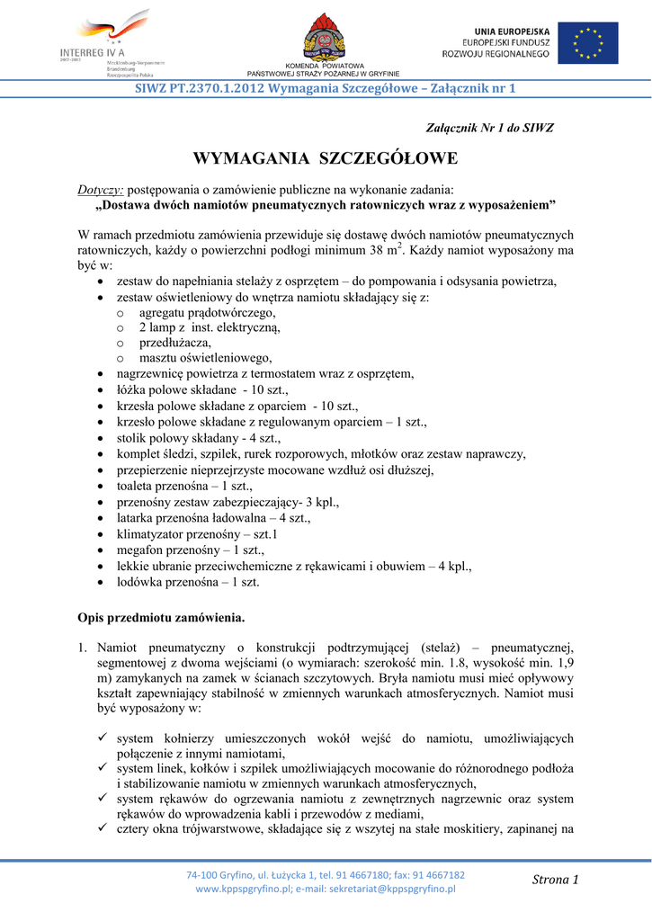 SIWZ namioty zał. nr 1 Wymagania szczegółowe