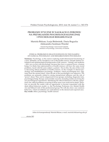 Polskie Forum Psychologiczne, 2013, tom 18, numer 3, s. 363-374 ȱȱȱ ȱȱȱ ȱRȱ ȱȱ ȱ ȱ ȱ£ǰȱRȱǰȱȱȱ Aleksandra Szulman-Wardal ¢ȱ¢ǰȱ ¢ȱÚ ȱȱ¢¢ǰȱ¢ȱȱÚȱ ETHICAL PROBLEMS IN HEALTH SCIENCES ON THE EXAMPLE OF CLINICAL PSYCHOLOGY AND REHABILITATION PSYCHOLOGY Summary. Psychology, as the science exploring multi-dimensional functioning of ȱǰȱę¢ȱȱȱęȱȱȱȱȱȱǯȱȱȱtological and epistemological backgrounds of life sciences – biology and medicine – they can co-exist with psychology, because they have a common focus: a human being. It is likely that representatives of health sciences will have the same moral problems, faced with the same subject: a patient. Due to this, the aim of this work is discussing ethical problems in health sciences, on the example of clinical psychology and rehabilitation psychology. Problems, which psychologists face, originate from the ancient times, when the job of the psychologist was unknown. The ȱ ȱ ¢ȱ ȱ ȱ ȱ ȱ Ěȱ ȱ ȱ ȱ ȱ ‘power’ abuse. They can be categorized to four groups, including: diagnostic tests, ¢ȱǰȱ¢ȱȱęȱǰȱȱȱȱȱ use psychological experiments. Identifying the ethical dimension with the competence one, ethical problems occurring in those areas were analyzed in detail. Therefore we provide the reader with an opportunity to become acquainted with the ideal ethical behaviors model, i.e. the Psychology Profession Act, Mental Health Act and Ethical Code of this professional group. We will also show case common behaviors, which nevertheless are contradictory to the desired and expected ones. Key words: ethics, psychology, health sciences Adres do korespondencji: Mariola Bidzan, e-mail, [email protected] strona 363 „Salus aegroti suprema lex” ǻ ȱȱ ¢Č£¢ȱ Ǽȱ Hipokrates (ok. 460-377 p.n.e.) £ȱ¿ȱ¢ȱ ȱ¢ Čȱ ȱ Č¢ȱ £ȱ Ú¢ȱ ę£ ǰȱ ¢ȱ DZȱ ȱ £ȱ ȱ ǻŜŘŚȬ -547 p.n.e.), Anaksymenes i Anaksymander z Miletu czy Heraklit z Efezu zajmowali ¿ȱ ȱ¢ȱȱ¢ ȱȱȱ £ ȱȱ£ȱČ ïȱ ȱ£ȱ¿ǯȱ £ȱ£ȱȱ¢ȱ£ȱ¿ȱȱǻŚŜşȬřşşȱǯǯǯǼǰȱ à¢ȱïÙȱ££àȱ¢ȱǻΣΕΉΘφǼǰȱȱȱ£ȱ¢£¢ȱČȱ£ £°ȱ ȱ£ȱ£ǰȱà ¢ȱČȱȱȱ£ £¿¢ȱȱȱ £ȱ £ȱ£ £ȱȱ£ȱČ¢ȱȱ££¿ïǯȱČȱ£ ȱȱȱ¿ȱ£ ȱ¿ȱ ȱ¢ǰȱǯǯȱ¢ȱ¢ȱ£ȱȱ£¢ȱǰȱà¢ȱ £¢Ùȱ¢£ȱ¿ȱ£ȱàǯȱČ¢ȱ °ȱČȱȱ ȱ ǻǯȱŚŜŖȬřŝŝȱǯǯǯǼǰȱȱ£ǰȱ¢ȱ£ȱà ȱ àÙ£ȱ¢¢¢ǰȱàȱȱg ȱ£ȱ£¢ȱ£ Ùȱ£¢¿¿ȱǰȱ ȱ ȱŗşŚŞȱȱ ȱ ǯȱ¿ȱȱĊàÙȱ¢ǰȱČ¢ȱ£¢£¢°ȱ ȱ¢ȱǻŘŞŚȬřŘŘȱǯǯǯǼǰȱà¢ȱ¢Ùȱȱ ȱà ȱ£¢ȱ£ȱ¢£ǯȱ ȱ¢£ȱ£ £ȱ£ȱ¢ȱ£ȱČȱ ȱȬȱ ȱǯǯȱ ȱ Ù¢ȱ ȱ £¿ȱ ȱ ¢£¢ǰȱ ïï°ȱ £¢ǰȱ Č¢ȱ ȱ ïǯȱȱȱ¢£¢ȱà ȱ £°ȱČȱȱ¢ǰȱȱ ȱ££¿ïǯȱȱ¢ȱ Ùïȱȱ Ù¢ȱ¿ȱï ïǰȱ £¢ǰȱ ££¢ȱ ȱ ¿ǰȱ ȱ ȱ ȱ ȱ ¢ȱ ǻ £ǰȱ ŘŖŖŚǼǯȱ ȱ ǻŗşŝşǼȱ ¿ȱ ¢ȱ ȱ ȱ ¿¢ȱ Ù DZȱ Ǯȱ ¢ȱ¢ ¢ȱ ȱ££ȱȱȱà Čȱ ȱĚȱ£ȱ £¢ȱ ȱȱ£ȱ ǯȱȱ ǰȱ ȱ ȱ£ȱ¢ ȱȱ £ Ùȱ¢Ùȱ ȱȱ£¢ȱ£¿£¢ǯȱęȱ ¢¢ȱ¢à ǰȱ£¢ȱ£¢ȱę£à ȱ£ ȱ¢ȱȱȱ ȱĚȱ£ȱ ǰȱ£ ȱ ȱ àÙ£ïȱ£ȱ£¿à ȱȱ ȰȱȱČǯȱȱ£Ùȱ£¢ȱ ȱ £¢ȱ £ȱ £¿ȱ Ù£Č¢ǯȱ ȱ à Čȱ ££Ùȱ ǰȱ ȱ °ȱ ȱČ¢ȱ ȱ¿ȱÚ ȱǻdzǼǯȱàÙ¢ȱïȱ £°ǰȱČȱ£ȱ ȱȱǰȱ¢°ȱČǰȱȱȱ££ÙïǰȱČȱ àÙ£ïǰȱ ȱ £ £ȱ £ȱ ¿ȱ ¢ǰȱ ï ¢ȱ ȱ ¢ £ȱ ȱ Ù ȱ Ù£¢ ǰȱ ǯȱ¢ȱ Ȭ ¢£ Ú£ǰȱàȱ£Čȱ£Ùȱ£ ȱȱ £ ȱ ǯȱȱ Ùïȱȱ¢Ùȱ ȱ ¿£¢ǰȱȱ£Čȱ àÙ£ïȱȱȱČȱ£££¢°ǰȱČȱ¢Ùȱȱȱȱ¢ȱ£ȱ ¿£¢ȱ¢à ȱ¢ǰȱȱ ¢Ùȱ£ȱȱ£ï°Ȅȱǻ ǰȱŗşŝşǰȱǯȱŞŜǼǯȱ ȱ ȱ £ïǰȱ£ȱ¢ȱ¿ȱȱ ȱǯǯǰȱČȱ£ȱ £¿ȱȱ£ ï°ȱ¢ǰȱȱ£ȱȱȱ£stawienie aktualnych problemów etycznych w psychologii klinicznej i w psychoȱ ǯȱ ¢ȱ ȱ £ àȱ £ȱ £ǰȱ £ȱ ¢ęȱ ȱ strona 364 ȱ£ £ȱȱ£ȱ¢ȱ££ȱ ȱȱÙ£¢ȱ £ȱ£Ù ȱ¢ȱà ǰȱ¢ȱȱ¢ ȱĚǯȱȱ £¿ȱȱ£ȱ £à ȱȱ£Úȱ¢ǰȱ£¿ȱǰȱ¢ȱȱȱ ȱ¢ȱ£ £ȱ¢£ Ùȱ¿ȱ ¢ȱȱï ȱà ǰȱ ȱà¢ȱ££¢ȱ£ȱ ¢ȱȱï ïȱǻ££Úska, Appelt, 2000). £¢ȱà ȱ¢£¢ȱ ȱ¢ȱȱ ¢ȱ ¢£ǰȱ £ȱ ȱ ¢ȱ ¿ȱ ¢£¢ȱ ï°ȱ Čȱ ȱ ŝȱ Ùà ¢ȱ £à ǰȱ ¢DZȱ ȱ ¢£ǰȱ ǰȱ £ǰȱȱ¢£ǰȱ¢¿ǰȱȱ ȱ£ȱ¢¢¿ǯȱ Čï°ȱ£ ȱȱȱ¢ȱȱ ¢ȱ¢£¢ £Čȱ ȱ £ȱ £Ùǰȱ ȱ ȱ £¿ȱ £ȱ ȱ ǰȱ ¢ȱ ¢£¢ȱ ȱ £ £ȱ ¢ȱ £ £¢ȱ ȱ £ȱ Čïȱ £ ǰȱ ȱ ȱ £ȱǯȱȱ ¢ȱ¢£¢ȱȱà ££¢ȱ£ȱ ¢ȱ¢¢ǯȱ ȱ Čȱ ȱ ¢°ȱ ¢ȱ £ȱ ȱ Ȧ ïȱ£ £¢ȱȱ£ȱȱ£ ǰȱȱ¢£¢ǰȱïȱȱ¢ȱ¿ȱ £Ȧ¿ïǰȱȱ ǰȱČȱĊȱ ¢ȱ¿ȱ ȱ¿ȱ£ ȱ ǻ££ÚǰȱǰȱŘŖŖŖǼǯȱ¢ȱ¢ȱȱǰȱà¢ȱ£ȱ£Ùȱ ¿ȱ ȱ ȱ à ȱ ǰȱ ȱ Čȱ ȱ ȱ Ú£ȱ £Ùȱ ¿ȱ ǯȱ ȱ ¢ȱ ȱ £ȱ Ù¢ǰȱ £¢ȱ ȱ £¢ ¢ȱ ȱ ȱ¢ǰȱ¢Čȱȱ ȱ¿¢ȱȱ£Ù¢ǯȱȱà ȱ £Úǰȱ à ȱ ¢ ¢ȱ £¢ȱ ȱ £àÙȱ ¢£¢ǯȱ ¢ǰȱČ ȱ¢ęȱę ǰȱàȱ£¢ȱ¢ȱ ȱ¢ȱȱ ȱ ȱȱ°ȱ£ȱ£¢ȱ£ £¢ȱ£ȱÙ¿ȱ ¢£Ùǯȱȱ£ £ȱ£ȱ¢ȱ££¿ȱ£ȱȱ£ ȱȱ zazwyczaj wielkie wyrzeczenia nie tylko ze strony psychologa, ale i jego rodziny. ȱ£ȱ£ȱȱȱ¿ȱ £ȱ ȱï ǰȱČȱǮȱ¢ȱ£ȱȱ¢ǰȱȱ£ï°ȱ£Ùȱ¿Ȅǯȱ ȱ£ ȱ¢ȱȱȱ £ȱ ¢£¢ȱ£ȱ£ÙǰȱČȱ¢ȱ£¢ȱȱ¢ȱȱȱȱ¢ǯȱ¢ȱȱ ȱȱ£ ȱȱ°ȱ ȱ ęǰȱȱȱ ¿ȱČ ïȱ ¢ȱ£ȱ ¢DZȱ „Art. 15. ŗǯȱ ¢ȱ Čȱ £¢°ȱ ¢Ùȱ ¢ȱ ȱ ïȱ ££ȱ ¢ȱ ȱ ¢ȱ £ǰȱ ïȱ ȱ £ȱ ȱ £ÙČȱ £ȱ Ú ȱȱȱ£ȱà £¿ȱ¢Ùȱ¢ȱ£ȱ£ȱȄǯȱ ȱȱȱ£ȱ ȱà ȱà ȱ¢£¢ȱÚ£¢ȱïČ¿ȱ£ȱ¢ȱ£ȱȱ£¢°ȱ¢Ùȱ¢ǯȱ¢ǰȱȱ £¢ȱ ȱ ¢Ùȱ ¢ȱ £ȱ ££ȱ £ȱ £¢ȱ ȱ strona 365 £¢¢ǯȱ £ȱ àȱ Ú£¢ȱ ȱ ¢£ȱ £Ùȱ ȱ ȱȱȱ ȱà ȱ£ȱȱ£¢ȱÙȱ ǰȱ¢ȱ ȱ ¢ȱ ȱ Şȱ £ȱ ȱ ȱ £ȱ ¢Ù¢ȱ ȱ ¢£ȱ ǻ¡ǯȱřŖȱàȱȱǼǰȱȱ£ïȱ¢£¢ȱ£ÙȱȱȱȱŘŖȱ£ȱ ȱȱǻǯȱŘŖŖȱàȱȱǼǯȱȱČȱȱ£°ȱ¿ȱ ïȱ¢ȱ ¢£ǰȱ£¢ȱ 