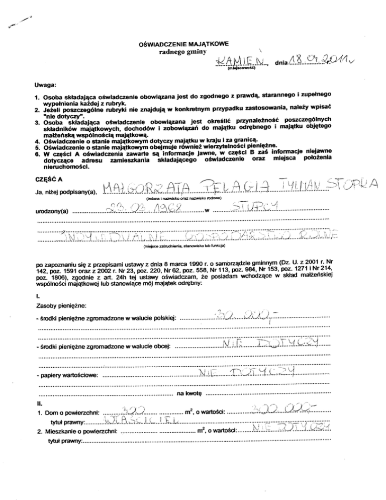 4. oświadczenieo stanie mai{t*owvń dotyczy maiątkuw kraiu i za granicą. . .