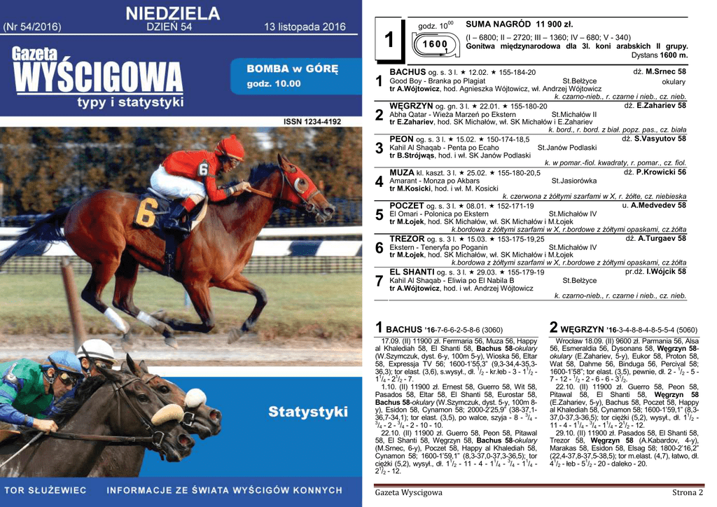 Gazeta Wyscigowa Strona 2 SUMA NAGRÓD 11 900 zł.