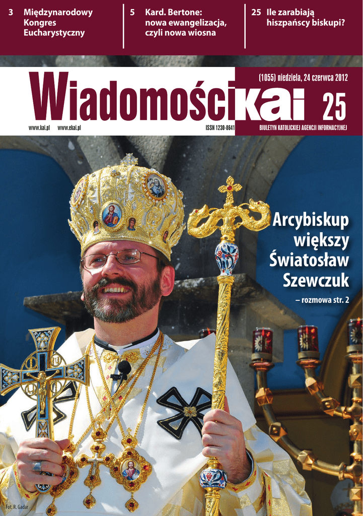 3Międzynarodowy Kongres Eucharystyczny 5 Kard. Bertone: nowa ewangelizacja, czyli nowa wiosna 25 Ile zarabiają hiszpańscy biskupi? (1055) niedziela, 24 czerwca 2012 www.kai.pl www.ekai.pl ISSN 1230-8641 25 BIULETYN KATOLICKIEJ AGENCJI INFORMACYJNEJ Arcybiskup większy Światosław Szewczuk – rozmowa str. 2 Fot. R. Gadar ROZMOWA K AI EDITORIAL Arcybiskup większy Światosław Jeszcze nigdy nasz Kościół tak nie rozkwitał 2 Rozmowa z arcybiskupem większym kijowsko-halickim Światosławem Szewczukiem „Jaki młody!” – dziwiono się, gdy 23 marca 2011 r. Synod Biskupów Ukraińskiej Cerkwi Greckokatolickiej wybrał na swego zwierzchnika 41-letniego władykę Światosława Szewczuka. Mało kto chyba pamiętał, że słynny metropolita Andrzej Szeptycki został głową Cerkwi Greckokatolickiej w wieku zaledwie 35 lat. Ja akurat o tym wiedziałem, ale doznałem pewnego szoku, gdy stawiwszy się na wywiad w hotelu Jana Pawła II we Wrocławiu zobaczyłem, że drzwi otworzył mi młody człowiek, który mógłby być moim synem. Miałem przed sobą duchownego o ujmującym, szczerym uśmiechu, nie przypominającego swoich dostojnych poprzedników: Szeptyckiego, Slipyja, Lubacziwśkego i Huzara. W dodatku mówiącego ładnie po polsku. Arcybiskup Światosław już dziś zaczyna spełniać pokładane nadzieje władyków, którzy odważnie i dalekowzrocznie wybrali go na głowę Cerkwi Greckokatolickiej. Jest hierarchą, który ma wizję duszpasterską, obejmująca nie tylko Ukrainę, ale także ukraińską diasporę. W wywiadzie, który przeprowadziłem z Arcybiskupem, potwierdził doniesienia medialne, że jest hierarchą otwartym na argumenty drugiej strony, co dobrze rokuje dialogowi z braćmi prawosławnymi. Przez kilkanaście miesięcy przewodzenia Cerkwi Greckokatolickiej dał się też poznać jako surowy krytyk ukraińskich władz, co być może jest powodem, że prezydent Wiktor Janukowycz unika z nim spotkania. Niedawno arcybiskup Światosław został członkiem Papieskiej Rady ds. Popierania Jedności Chrześcijan. To ważna nominacja, bo grekokatolicy od dawna aspirują do tego, aby być pomostem w dialogu między Kościołem katolickim a prawosławiem. Być może jest to sygnał z Watykanu, że decyzje dotyczące istotnych problemów ekumenicznych nie będą już zapadały bez konsultacji z Cerkwią Greckokatolicką. Grzegorz Polak Jak Ksiądz Arcybiskup czuje się jako następca wielkich hierarchów greckokatolickich – metropolity Andrija Szeptyckiego i kardynała Josyfa Slipyja? – Dla mnie to wielki zaszczyt i zaskoczenie, że to akurat ja jestem następcą tych wybitnych hierarchów. A także wielkie wyzwanie, aby starać się ich naśladować w życiu osobistym i w posłudze pasterskiej, a także kontynuować ich linię działania. Z drugiej strony czuję, że jestem pod ich opieką. Metropolita Andrzej Szeptycki był moim patronem, gdy po upadku Związku Sowieckiego jako pierwszy grekokatolik wyjechałem na studia do Rzymu i wróciłem stamtąd z doktoratem. Cała moja praca naukowa toczyła się w dialogu z metropolitą Szeptyckim. Jak to rozumieć? – Uważam go za swego patrona. Gdy kard. Myrosław Lubacziwśkyj zakomunikował mi, że chce mnie wysłać na studia do Rzymu, poszedłem do krypty w soborze św. Jura, gdzie jest pochowany metropolita Szeptycki, aby poprosić go o błogosławieństwo i wstawiennictwo. I on nigdy mnie nie opuścił. Czułem, że ręka tego świętego człowieka była nade mną. A kiedy byłem rektorem seminarium we Lwowie, w sposób szczególny, poprzez modlitwę, czułem kontakt duchowy z kardynałem Slipyjem, który też był młodym rektorem tego seminarium. Czasem bywają takie sytuacje, kiedy nie można z nikim porozmawiać, poradzić się, a trzeba podjąć decyzję. Wtedy wzywałem pomocy kard. Slipyja. I jakoś zawsze wychodziło na dobre. Ksiądz Arcybiskup jest jeszcze młodym człowiekiem, ale pamięta czasy Cerkwi podziemnej. Jak wyglądało wtedy życie religijne Waszej rodziny? – W Ukrainie zachodniej wiara chrześcijańska i tradycja Kościoła greckokatolickiego była zachowywana i przekazywana następnym pokoleniom w rodzinie. Rodzina to była Eclessia domestica (Kościół domowy), środowisko, gdzie można było prowadzić życie religijne w ukryciu, ponieważ na zewnątrz było to zabronione, a jakiekolwiek przejawy religijności surowo karano. Modlitwa czy katecheza odbywały się tylko w rodzinie, dzięki rodzicom. Były trzy sposoby na obchodzenie niedziel i świąt. Po pierwsze – słuchano naszej liturgii transmitowanej przez Radio Watykańskie. Po wioskach ustawiano nawet radioodbiorniki w oknach, żeby więcej ludzi mogło słyszeć. Drugi sposób, to było uczestnictwo w życiu religijnym Kościoła rzymskokatolickiego, który też miał ciężko, który też doznawał szykan i prześladowań, ale gdzieniegdzie jego świątynie nie zostały zamknięte. Zachowaliśmy bardzo dobre wspomnienie o księżach rzymskokatolickich, którzy pomagali nam, byli otwarci i udzielali nam sakramentów. Ja pochodzę ze Stryja, gdzie – dzięki Bogu – zawsze był czynny kościół obrządku łacińskiego. Choć ksiądz znajdował się pod presją władz sowieckich, nigdy nie odmówił nam posługi. cd. na str. 26 50. Międzynarodowy Kongres Eucharystyczny w Dublinie 10-17 czerwca odbywał się w Dublinie 50. Międzynarodowy Kongres Eucharystyczny pod hasłem „Eucharystia: Komunia z Chrystusem i między nami”. Benedykta XVI, który już wcześniej zapowiedział, że nie pojedzie do stolicy Irlandii, reprezentował jako legat prefekt Kongregacji ds. Biskupów kard. Marc Ouellet. Otwarcie Do udziału w jubileuszowym Kongresie zgłosiło się ponad 22,5 tys. katolików, w tym 7 tys. z zagranicy, ze 101 krajów. Delegacji polskiej przewodniczył biskup łowicki Andrzej Dziuba. Program MKE przewidywał uroczyste, codzienne Msze św, adoracje, konferencje, wystawy, koncerty... Kongres rozpoczął się Mszą św. koncele