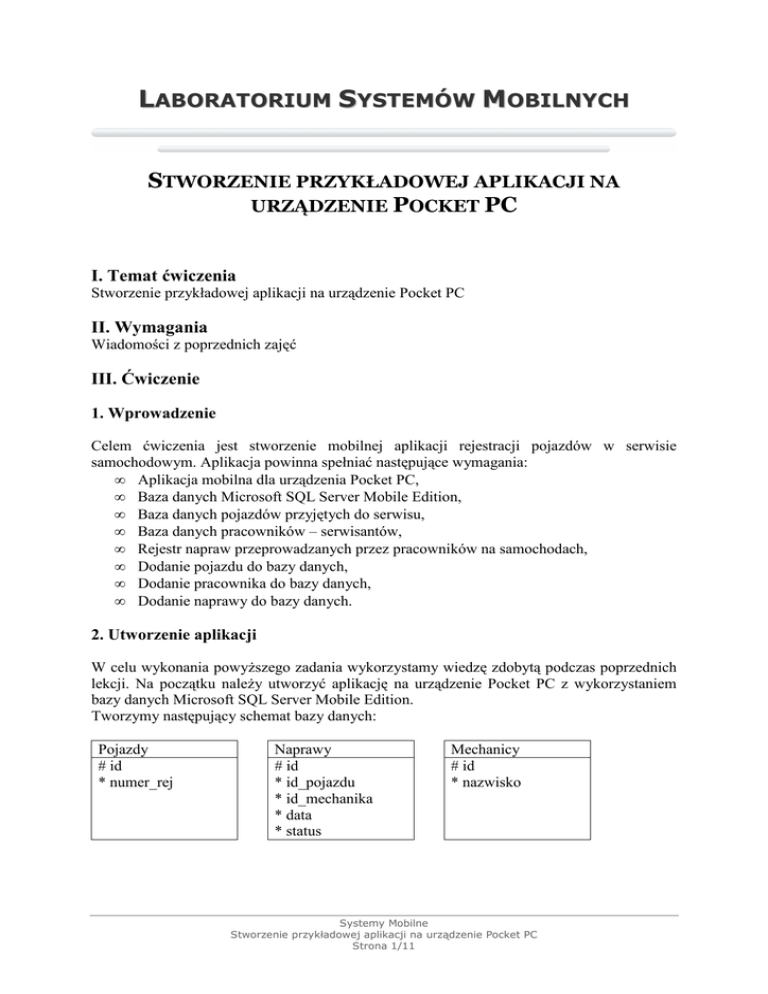 lekcji. Na początku naleŜy utworzyć aplikację na urządzenie Pocket PC z wykorzystaniem