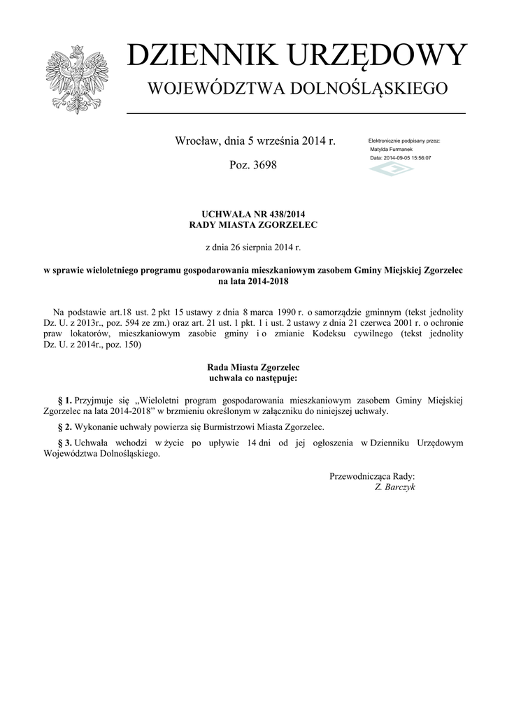 Uchwała Nr 438/2014 z dnia 26 sierpnia 2014 r.