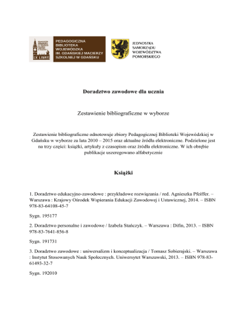 Doradztwo zawodowe dla ucznia Zestawienie bibliograficzne w