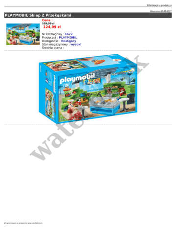 Informacje o produkcie Utworzono 02-03-2017 PLAYMOBIL Sklep Z Przekąskami Cena : 129,99 zł 124,99 zł w at er m ar k Nr katalogowy : 6672 Producent : PLAYMOBIL Dostępność : Dostępny Stan magazynowy : wysoki Średnia ocena : Wygenerowano w programie www.oscGold.com