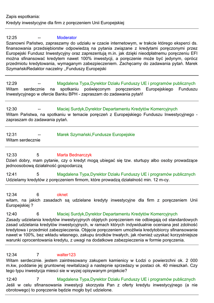 Przedmiotem dzisiejszego czatu są poręczenia Europejskiego Funduszu Inwestycyjnego powiązane