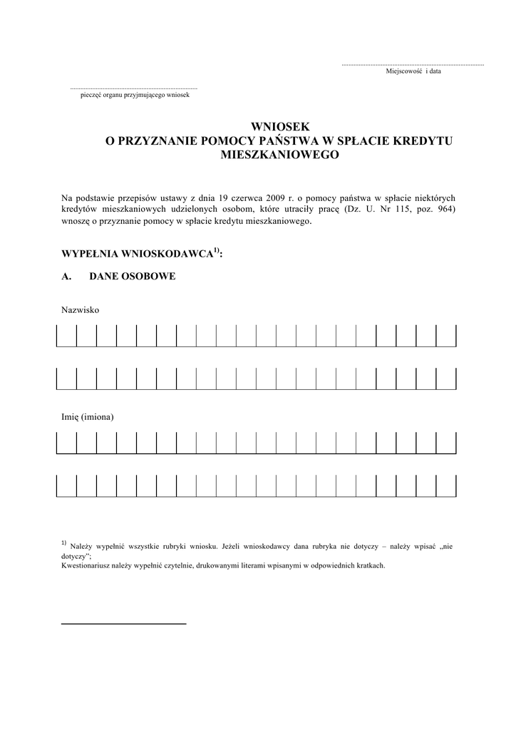 wniosek o przyznanie pomocy państwa w sp£acie kredytu
