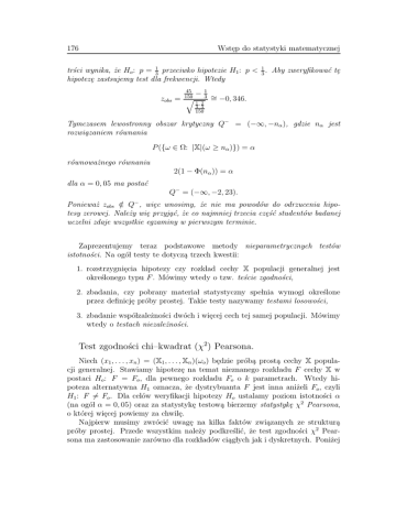 Jeśli teraz χ2obs = χ2 (ωo ) ∈ Q, to odrzucamy hipotezȩ Ho przyjmuja̧c hipotezȩ