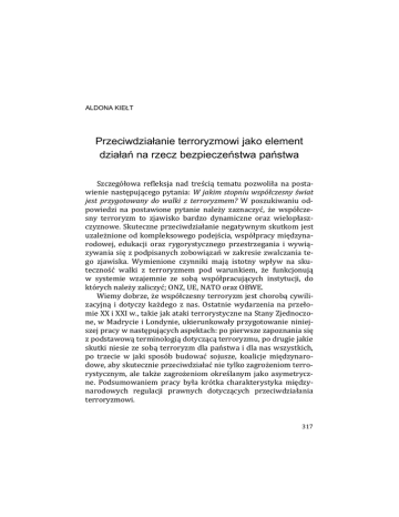 Przeciwdziałanie terroryzmowi jako element działań na rzecz