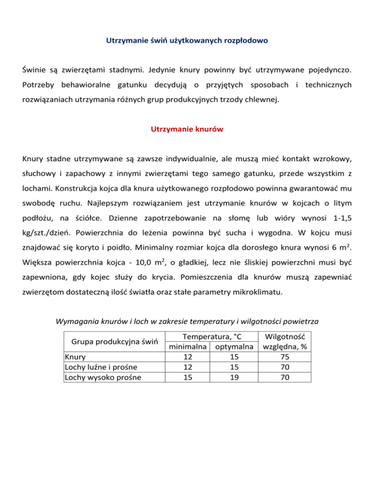 Utrzymanie świń użytkowanych rozpłodowo Świnie są zwierzętami