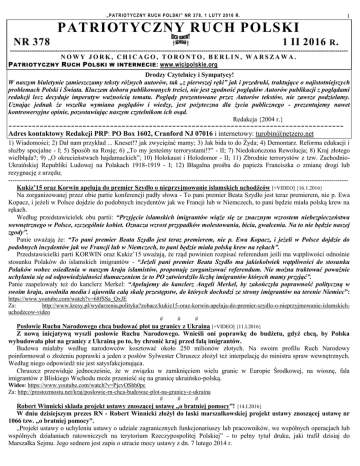 „PATRIOTYCZNY RUCH POLSKI” NR 378, 1 LUTY 2016 R.