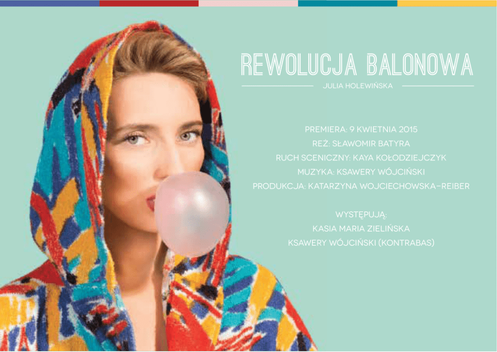 Rewolucja Balonowa Julia Holewińska Premiera: 9 Kwietnia 2015 Reż: Sławomir Batyra Ruch Sceniczny: Kaya Kołodziejczyk Muzyka: Ksawery Wójciński produkcja: Katarzyna Wojciechowska-reiber Występują: Kasia Maria Zielińska Ksawery Wójciński (kontrabas) Muzodram Rewolucja Balonowa / MUZODRAM jest drugą odsłoną, po premierze w Teatrze Powszechnym w Warszawie, lecz w zupełnie nowej niekonwecjonalnej formie. Ta niezależna produkcja to połączenie spektaklu teatralnego z koncertem. Aktorce towarzyszy kontrabasista. Instrument uzupełnia monolog, w jednej chwili podążając za jego rytmem a w innej skłaniając do wyśpiewania tekstu. Spektakl zbudowany jest jak muzyczna partytura. Kontrabas ilustruje, rytmizuje, przywołuje cytaty muzyczne. Aktorka mówi, śpiewa, naśladuje dźwięki natury i głosy przeróżnych postaci. Finezyjnej formie muzycznej towarzyszą migawki starych zdjęć przedstawiających rzeczywistość przełomu 89 roku. Rewolucja Balonowa Strona 2 Opis spektaklu Rewolucja balonowa to barwna, a jednocześnie sentymentalna opowieść o polskiej transformacji ustrojowej lat dziewięćdziesiątych, widzianej oczami małej dziewczynki. To również portret pierwszego wychowanego w demokracji pokolenia – dzisiejszych trzydziestolatków. Kim są? Które z ich marzeń się spełniły, a z którymi musieli się rozstać? Co zostało z zachwytu kapitalizmem i demokracją? Co tak naprawdę pamiętamy z lat dziewięćdziesiątych? Kolorowe produkty w sklepach? Mydełko Fa? Stana Tymińskiego? A może po prostu smak gumy balonowej? Monodram napisany specjalnie dla Katarzyny Marii Zielińskiej przez zdobywczynię Gdyńskiej Nagrody Dramaturgicznej – Julię Holewińską. Rewolucja Balonowa Strona 3 aktorka Urodzona 8 września 1981 roku. Absolwentka Akademii Teatralnej w Warszawie (2005), ukończyła także szkołę muzyczną pierwszego stopnia oraz była słuchaczką szkoły muzycznej drugiego stopnia w klasie skrzypiec. Na scenie zadebiutowała już na trzecim roku studiów monodramem „Goście” w reżyserii Eweliny Pietrowiak. Od 2005 roku jest aktorką Teatru Powszechnego w Warszawie. W czerwcu 2012 r. otrzymała Nagrodę Publiczności dla Najlepszej Aktorki na 3. Festiwalu Konfrontacji Młodych m-teatr za monodram: „Rewolucja Balonowa” w reżyserii Sławomira Batyry. Karierę filmową rozpoczęła od filmów: ”Pręgi”, „Oda do Radości – Morze”, ”Wszyscy jesteśmy Chrystusami”. Widzom telewizyjnym znana z seriali „Magda M.” oraz „Ula Brzydula”. W zeszłym roku na ekranach kinowych można było ją oglądać w nagradzanym filmie reż. Leszka Dawida ”Jesteś Bogiem”, gdzie Katarzyna Maria Zielińska wcieliła się w rolę dziennikarki. Obecnie można ją zobaczyć w najnowszych produkcjach Teatru Powszechnego spektaklu “Wojna i pokój” reż. Marcin Liber, i “Dziewczynach do wzięcia” reż. Piotr Ratajczak. Kasia maria zielińska www.kasiamariazielinska.pl Rewolucja Balonowa Strona 4 reżyser Studiował na wydziale reżyserii Akademii Teatralnej w Warszawie. W warszawskim teatrze Ateneum wyreżyserował Głód Knuta Hamsuna. W Teatrze Powszechnym w Warszawie zrealizował pierwszą odsłonę monodramu „Rewolucja Balonowa” Julii Holewińskiej. Współpracował również z Teatrem im. Juliusza Osterwy w Gorzowie Wielkopolskim gdzie zrealizował sztukę Babcia, napisaną przez Michała Walczaka oraz monodram „O łuskaniu fasoli” na podstawie prozy Wiesława Myśliwskiego. Sławomir Batyra Aktualnie finalizuje pracę nad filmem dokumentalnym objętym patronatem honorowym Teatru Wielkiego Opery Narodowej w Warszawie, który opowiada o pracownikach teatru. Jest także założycielem Warszawskiego Teatru Rewolucyjnego – społecznej sceny nawiązującej do tradycji teatrów robotniczych z lat trzydziestych. Reżyser teatralny, dokumentalista Rewolucja Balonowa Strona 5 muzyka Ksawery Wójciński - Kontrabasista i kompozytor, ur. w 1983r. Wszechstronny muzyk o wielkiej wrażliwości na brzmienie. Nie boi się eksperymentów. Jego zainteresowania sięgają od muzyki dawnej aż po najbardziej wyrafinowaną improwizowaną muzykę współczesną. Współpracował z takimi muzykami jak: Charles Gayle,Uri Caine, Mikołaj Trzaska, Michael Zerang, Satoko Fuji, Nicolle Mitchell, Tim Sparks, Klaus Kugel, Ken Vandermark.Mats Gustafsson, Gaba Kulka, Robert Rasz, Wacław Zimpel, Paweł Postaremczak, Raphael Roginski, Robert Kusiołek, Krzysztof Dys, Szymon i Maurycy Wójcińscy. Ksawery wójciński Współtworzy takie formacje jak legendarne Emergency, Hera. Koncertuje w kraju i za granicą. Jest znany również ze swych wokalnych eksperymentów, które przywodzą na myśl ducha takich artystów jak Tom Waits, Frank Zappa. Kontrabasista Rewolucja Balonowa Strona 6 ruch sceniczny Kaya Kołodziejczyk – tancerka i choreografka. Absolwentka Ogólnokształcącej Szkoły Baletowej im. Romana Turczynowicza w Warszawie oraz szkoły tańca współczesnego P.A.R.T.S. w Brukseli (stypendium Unii Europejskiej i Rządu Flamandzkiego) oraz Hochschule für Musik und Darstellende Kunst Frankfurt am Main (MA). Jako wykładowca tańca współczesnego i ruchu scenicznego Kołodziejczyk współpracuje z Uniwersytetami we Frankfurcie nad Menem i Giessen (Niemcy), Belgii- P.A.R.T.S., La Rafinerie, USA – San Diego State University, Architanz – Japonia, Tanzhaus – Zurich oraz jest gościnnym pedagogiem w teatrach Staat Theatre Kassel, Ballet National de Marseille czy Charleroi Dances. Kaya Kołodziejczyk Choreografka Jest ponadto stypendystką Fundacji Rudolfa Nurejewa, Ministerstwa Kultury i Dziedzictwa Narodowego, DanceWEB 2004, Młoda Polska NCK, Instytutu Adama Mickiewicza oraz Instytutu Muzyki i Tańca (w ramach programu Wspieranie aktywności międzynarodowej). Była również uczestniczką programu „Rezonans” realizowanego przy wsparciu Szwajcarskiej Fundacji dla Kultury ProHelvetia. http://www.taniecpolska.pl/ludzie/95 Rewolucja Balonowa Strona 