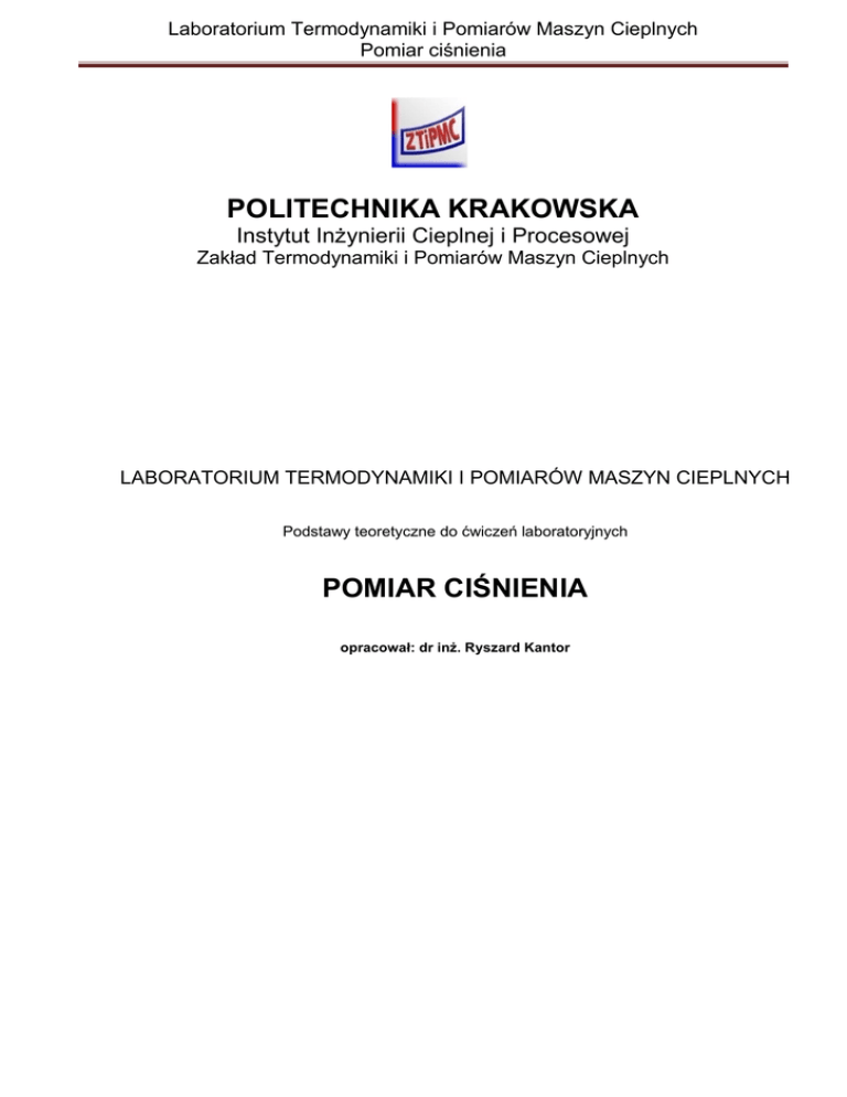 Pomiar ciśnienia - Laboratorium Termodynamiki i Pomiarów Maszyn