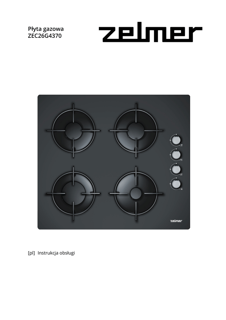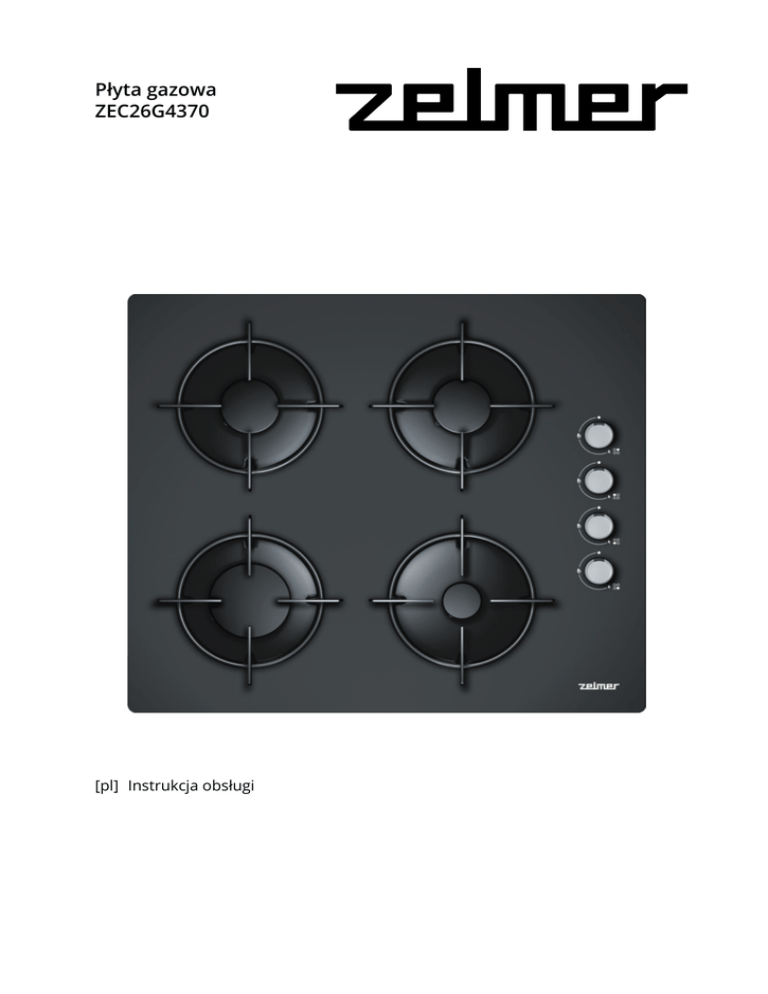 Płyta gazowa ZEC26G4370 [pl] Instrukcja obsługi =(&* 1 1 2 2 1 2 ! Ruszty " Pokrętła # Palnik pomocniczy o mocy do 1 kW ë Spis treści nuIrsp][ktalcojbłgi Wskazówki dotyczące bezpieczeństwa ................................... 3 Nowe urządzenie w Państwa domu.......................................... 5 Akcesoria..............................................................................................5 Palniki gazowe ........................................................................... 5 Zapalanie ręczne ................................................................................5 Zapalanie automatyczne....................................................................5 System zabezpieczający....................................................................5 Gaszenie palnika.................................................................................6 Zakres mocy gotowania ....................................................................6 Uwagi ....................................................................................................6 Rady dotyczące gotowania...............................................................6 Naczynia do gotowania ............................................................. 6 Odpowiednie naczynia.......................................................................6 Uwagi dotyczące obsługi ..................................................................6 Czyszczenie i konserwacja ....................................................... 7 Czyszczenie .........................................................................................7 Konserwacja ........................................................................................7 Rozwiązanie nietypowych sytuacji........................................... 7 Serwis techniczny...................................................................... 8 Warunki gwarancji ..............................................................................8 Informacje o opakowaniu i postępowaniu ze zużytym urządzeniem ............................................................................... 9 Utylizacja zgodna z przepisami o ochronnie środowiska naturalnego ..........................................................................................9 2 $ Palnik półszybki o mocy do 1,75 kW % Palnik szybki o mocy do 3 kW & Palnik wok o podwójnym wieńcu płomieni o mocy do 3,3 kW : Wskazówki dotyczące bezpieczeństwa Proszę uważnie przeczytać poniższe wskazówki. Jedynie po zapoznaniu się z ich treścią będą Państwo potrafili obchodzić się z posiadanym urządzeniem w sposób skuteczny i bezpieczny. Proszę zachować instrukcje użytkowania oraz związane z instalacją, i przekazać je wraz z urządzeniem w przypadku zmiany właściciela. Producent nie ponosi jakiejkolwiek odpowiedzialności w przypadku, gdy zalecenia zawarte w niniejszej instrukcji nie będą przestrzegane. Ilustracje przedstawione w niniejszej instrukcji mają charakter orientacyjny. Do momentu zamontowania nie należy wyjmować urządzenia z opakowania ochronnego. Jeżeli zostanie zauważone jakiekolwiek uszkodzenie urządzenia, nie należy go podłączać. Proszę wówczas skontaktować się z naszym Serwisem Technicznym. Urządzenie spełnia wymogi klasy 3, zgodnie z normą EN 30-1-1 dotyczącą urządzeń gazowych: urządzenie do zabudowy. Przed zainstalowaniem nowej płyty kuchenki należy upewnić się, że instalacja zostanie wykonana zgodnie z zaleceniami zawartymi w instrukcji montażu. Nie należy instalować urządzenia na jachtach ani w przyczepach kempingowych. To urządzenie powinno być użytkowane wyłącznie w miejscach posiadających odpowiednią wentylację. Urządzenie nie jest przystosowane do pracy z zewnętrznym zegarem sterującym ani z systemem zdalnego sterowania. Wszystkie czynności związane z instalacją, podłączaniem, regulacją i dostosowaniem urządzenia do innych rodzajów gazu powinny być wykonywane przez upoważnionego technika, z uwzględnieniem wszystkich norm i przepisów prawnych obowiązujących w danym kraju oraz zaleceń lokalnych dostawców energii elektrycznej i gazu. Należy zwrócić szczególną uwagę na obowiązujące przepisy w zakresie wentylacji. Opisywane urządzenie zostało fabrycznie dostosowane do rodzaju gazu wskazanego na tabliczce znamionowej. W razie konieczności jego zmiany, należy zapoznać się z instrukcją montażu. W celu dostosowania urządzenia do zasilania innymi rodzajami gazu, zaleca się kontakt z naszym Serwisem Technicznym. Urządzenie zostało zaprojektowane wyłącznie do użytku domowego; niedozwolone jest jego użytkowanie w zastosowaniach handlowych lub profesjonalnych. Należy używać urządzenia wyłącznie w celu gotowania, natomiast nigdy w celu ogrzewania pomieszczeń. Gwarancja będzie ważna wyłącznie w przypadku przestrzegania przewidzianego sposobu użytkowania urządzenia. Nie pozostawiać włączonego urządzenia bez nadzoru. Nie należy używać innych pokrywek i barierek ochronnych dla dzieci niż zalecane przez producenta płyty kuchenki. W przeciwnym razie mogą spowodować wypadek, na przykład na skutek nadmiernego nagrzania, zapalenia lub oddzielenia się fragmentów materiału. Urządzenie mogą obsługiwać dzieci w wieku powyżej 8 lat oraz osoby z ograniczonymi zdolnościami fizycznymi, sensorycznymi lub umysłowymi, a także osoby nie posiadające wystarczającego doświadczenia lub wiedzy, jeśli pozostają pod nadzorem lub zostały pouczone, jak bezpiecznie obsługiwać urządzenie i są świadome związanego z tym niebezpieczeństwa. Dzieci nie mogą bawić się urządzeniem. Czyszczenie i podstawowe zabiegi konserwacyjne nie mogą być wykonywane przez dzieci bez nadzoru dorosłych. Niebezpieczeństwo deflagracji (szybkiej reakcji spalania)! Nagromadzenie w zamkniętym pomieszczeniu większej ilości gazu bez możliwości spalenia wiąże się z niebezpieczeństw