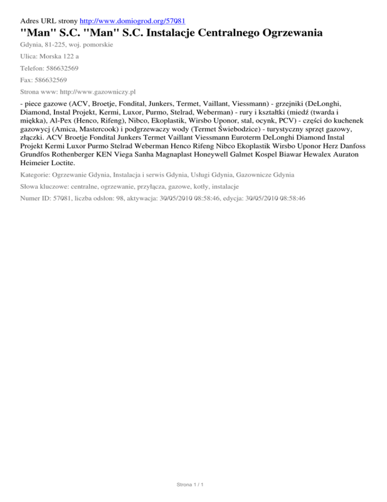 "Man" SC Instalacje Centralnego Ogrzewania, Gdynia, Morska 122 a