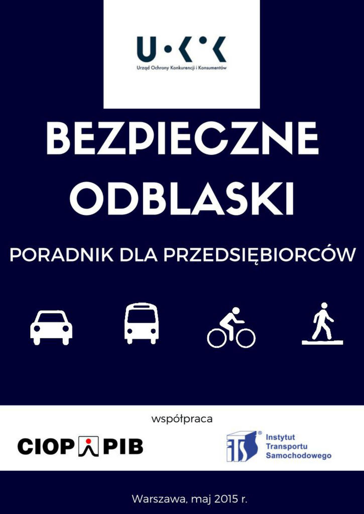Warszawa, czerwiec 2015 Opracowanie: Alicja Liszewska, Departament Nadzoru Rynku UOKiK Redakcja: Agnieszka Jaczyńska, Urszula Adamczyk, Biuro Prezesa UOKiK Opracowanie graficzne: Łukasz Tyburzec, Biuro Prezesa UOKiK 2 Spis treści Słowniczek pojęć _________________________________________________________ 5 I. Obowiązujące przepisy _______________________________________________ 7 1. Prawo krajowe _______________________________________________________________ 7 1.1. Prawo o ruchu drogowym ___________________________________________________ 7 1.2. Ustawa o systemie oceny zgodności__________________________________________ 7 1.3. Przepisy określające zasadnicze wymagania dla środków ochrony indywidualnej 7 2. Przepisy unijne _______________________________________________________________ 7 II. Normy zharmonizowane ______________________________________________ 8 III. Wytyczne Komisji Europejskiej ________________________________________ 9 IV.Odblaski jako środki ochrony indywidualnej ___________________________________ 10 V. Rodzaje i typy odblasków ____________________________________________________ 11 VI.Wymagania dotyczące odblasków _____________________________________________ 12 1. Ogólne ______________________________________________________________________ 12 2. Fotometryczne ______________________________________________________________ 13 3. Użytkowe ___________________________________________________________________ 13 4. Instrukcja użytkowania ______________________________________________________ 14 VII. Obowiązki przedsiębiorców ________________________________________________ 14 1. Obowiązki producenta i jego upoważnionego przedstawiciela ___________________ 15 2. Obowiązki importera_________________________________________________________ 15 3. Obowiązki dystrybutora ______________________________________________________ 16 VIII. Etapy procedury oceny zgodności dla odblasków _____________________________ 16 1. Dokumentacja _______________________________________________________________ 16 2. Wniosek o ocenę typu WE ____________________________________________________ 17 3. Certyfikat oceny typu WE ____________________________________________________ 18 4. Deklaracja zgodności WE _____________________________________________________ 18 5. Znak CE _____________________________________________________________________ 19 6. Domniemanie zgodności ______________________________________________________ 20 IX. Odpowiedzialność przedsiębiorcy _____________________________________________ 22 1. Sankcje administracyjne _____________________________________________________ 22 2. Odpowiedzialność karna _____________________________________________________ 24 3 Wstęp Poradnik skierowany jest do producentów, importerów i dystrybutorów akcesoriów odblaskowych. Ma na celu przedstawienie przepisów, procedur i zasad obowiązujących w Unii Europejskiej w zakresie wymagań, jakie powinny spełniać oznakowane znakiem CE odblaski. Zapoznanie się z zawartymi w publikacji informacjami powinno ułatwić codzienną pracę przedsiębiorcom wprowadzającym te produkty do obrotu lub oddającym je do użytku. Na rynku istnieje wiele wyrobów, które przypominają akcesoria odblaskowe, ale nimi nie są. Tak jest w przypadku gadżetów. Co decyduje o tym, że dany wyrób może być wprowadzony na rynek jako akcesorium odblaskowe, element odblaskowy czy odblask? Są to nazwy tożsame, używane w różnych aktach prawnych, normach zharmonizowanych bądź przez samych użytkowników. Zanim przejdziemy do dalszej części poradnika, w którym postaramy się odpowiedzieć na zadane wyżej pytania, przyjmijmy, że na potrzeby publikacji będziemy używać określenia „odblask” jako najczęściej stosowanego wśród użytkowników. Dlaczego w ostatnim czasie odblaski stały się tak popularne? Złożyło się na to wiele czynników, m.in. wzrost świadomości użytkowników dróg oraz liczne kampanie edukacyjne. Dodatkowo od 31 sierpnia 2014 r. obowiązkiem używania elementów odblaskowych zostali objęci wszyscy piesi, poruszający się po drodze po zmierzchu poza obszarem zabudowanym, a nie tylko dzieci i młodzież do 15 roku życia. 4 Słowniczek pojęć 1) dyrektywy nowego podejścia – dyrektywy Wspólnoty Europejskiej, uchwalone zgodnie z zasadami zawartymi w uchwale Rady Unii Europejskiej z dnia 7 maja 1985 r. w sprawie nowego podejścia do harmonizacji technicznej oraz normalizacji1; 2) dystrybutor – osoba fizyczna lub prawna albo jednostka organizacyjna nieposiadająca osobowości prawnej, która dostarcza lub udostępnia wyrób po jego wprowadzeniu do obrotu; 3) importer – osoba fizyczna lub prawna albo jednostka organizacyjna nieposiadająca osobowości prawnej, mająca siedzibę na terytorium państwa członkowskiego Unii Europejskiej lub państwa członkowskiego Europejskiego Porozumienia o Wolnym Handlu (EFTA) - strony umowy o Europejskim Obszarze Gospodarczym2, która wprowadza do obrotu lub oddaje do użytku wyroby pochodzące z krajów trzecich; 4) norma zharmonizowana – w rozumieniu art. 2 pkt 9 rozporządzenia (WE) nr 765/2008, której tytuł i numer zostały opublikowane w Dzienniku Urzędowym Unii Europejskiej (art. 5 pkt 14 ustawy o systemie oceny zgodności); 5) ocena zgodności - proces wykazujący, czy zostały spełnione określone wymagania odnoszące się do produktu, procesu, usługi, systemu osoby lub jednostki3; 6) oddanie do użytku – jest to pierwsze na terytorium państwa członkowskiego Unii Europejskiej lub państwa członkowskiego Europejskiego Porozumienia o Wolnym Handlu (EFTA) - strony umowy o Europejskim Obszarze Gospodarczym zgodne z przeznaczeniem użycie wyrobu, który nie został wprowadzony do obrotu; 7) oznakowanie zgodności (znak CE) – oznakowanie potwierdzające zgodność z zasadniczymi wymaganiami; 8) pieszy - osoba prowadząca rower czy też inny pojazd dwukołowy, a także wózek dziecięcy, podręc