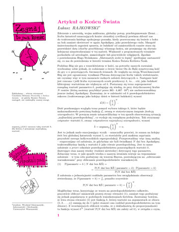 jeszcze żadnej Apokalipsy. Zauważmy, że w zależności od k prawdopodobieństwo