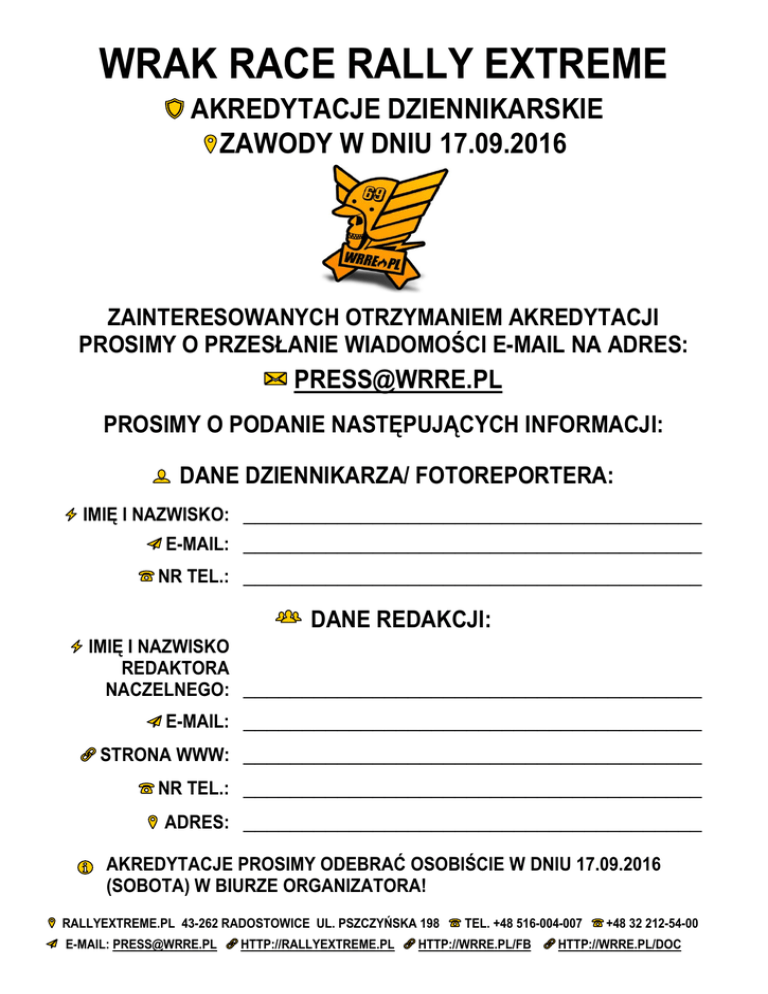 AKREDYTACJE DZIENNIKARSKIE WRAK RACE RALLY EXTREME