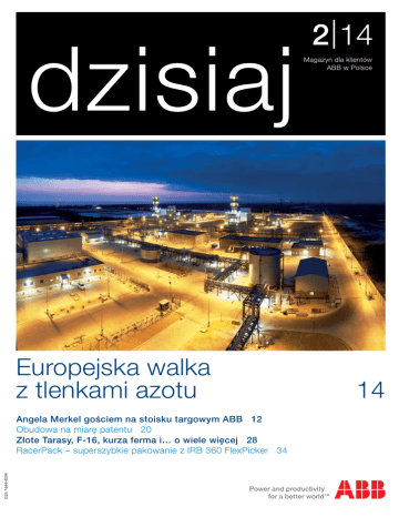 dzisiaj Europejska walka z tlenkami azotu Angela Merkel gościem na stoisku targowym ABB 12 Obudowa na miarę patentu 20 Złote Tarasy, F-16, kurza ferma i… o wiele więcej 28 RacerPack – superszybkie pakowanie z IRB 360 FlexPicker 34 2 | 14 Magazyn dla klientów ABB w Polsce 14 W numerze dzisiaj 6 Spis treści 2|14 ABB na EXPOPOWER W Poznaniu ABB zdobyła Złoty Medal MTP oraz statuetkę Acanthus Aureus. 14 Europejska walka z tlenkami azotu Obecnie największym wyzwaniem dla energetyki zawodowej jest redukcja tlenków azotu w spalinach. Czasu jest niewiele – nowe normy zaczną obowiązywać już w 2016 roku. Szanowni Państwo, Unia Europejska za jeden z priorytetów swojej polityki wewnętrznej stawia ochronę środowiska. Po wieloletnim boju z dwutlenkiem siarki, zakończonym względnym sukcesem, przyszedł czas na tlenki azotu. Powstając w procesie spalania, są nieodłącznymi towarzyszami funkcjonowania dwóch branż: energetyki wytwórczej i silników samochodowych. I właśnie one muszą wykonać największą pracę, by ograniczyć emisję NOX do atmosfery. Sprawa nie jest prosta, ponieważ w przypadku energetyki zawodowej zmniejszenie emisji wiąże się z ingerencją w proces spalania lub wymaga wybudowania dodatkowej instalacji odazotowania, a nowe normy zaczną obowiązywać już w 2016 roku. Problemowi temu poświęcamy bieżący Raport, w którym znajdziecie Państwo także informację o szkodliwości poszczególnych tlenków azotu, sposobach ich mierzenia i eliminowania. W numerze również próba znalezienia odpowiedzi na pytanie jak zwiększyć przepustowość sieci dystrybucyjnej, by wesprzeć rozwój rozproszonych źródeł energii, lub odwracając zagadnienie, jak zwiększyć udział rozproszonych źródeł energii w sieci, nie pogarszając niezawodności zasilania. A jeśli ktoś woli skalę mikro, to zapraszamy na wizytę na Politechnice Łódzkiej, gdzie powstało unikatowe w skali świata laboratorium generacji rozproszonej. Poza tym tradycyjnie, kilka nowatorskich technologii i produktów, w tym także, być może o mało przebojowej aparycji i całkiem zwyczajnej nazwie, a jednak innowacyjna … obudowa do przekształtników mocy, z glejtem prosto z Urzędu Patentowego RP. A dla miłośników nowoczesnej technologii pod własną strzechą, wizyta w nowo otwartym w Wilanowie, salonie pokazowym firmy Elektris, gdzie technologia KNX nabiera realnych kształtów i pozwala się dotknąć. Serdecznie polecam Państwu lekturę całego wydania. Anita Romanowska Dzisiaj nr 2/14 (48), kwiecień – czerwiec 2014 • Magazyn dla klientów ABB w Polsce • Adres do korespondencji: ABB Sp. z o.o., Departament Komunikacji, ul. Żegańska 1, 04-713 Warszawa • Sekretariat redakcji: Anita Romanowska, tel. 603 720 259, [email protected] • Redaktor naczelna: Anita Romanowska • Redaktor prowadzący: Sławomir Dolecki • Produkcja: ATO • Rada programowa: Agnieszka Gabrysiak, Anita Romanowska, Daniel Rupiński, Sławomir Dolecki, Tadeusz Maszewski, Robert Koziarz • Fot. na kolumnach: Urszula Czapla/Arch. ABB; Arch. ABB • Fot. na okładce: Arch. ABB 2 ABB Dzisiaj 2|14 32 Automation Builder – pakiet zintegrowany Nowy pakiet oprogramowania Automation Builder zawiera w sobie wiele programów dostępnych dotychczas jako osobne narzędzia. 38 RIS – przepusty nowej generacji Przepusty EasyDry są wykonane z włókna polimerowego impregnowanego żywicą i mają zewnętrzny izolator z kauczuku silikonowego. Aktualności Innowacje 4Energooszczędne przekształtniki dla nowej floty PKP Intercity 5 Dławiki, które obniżą koszty przesyłu energii 6 ABB na EXPOPOWER 2014 7 Grand Prix WOD-KAN 2014 dla ABB 7 Tranzystory z grafenu wygrywają w konkursie SEP 8 Aby praca naukowa miała wartość nie tylko naukową 9 Z nauką przez wieki 9 ABB IT Challenge rozstrzygnięty 10 Dotknąć nowoczesnej technologii 12 Angela Merkel gościem na stoisku targowym ABB 12 W trosce o bezcenne eksponaty Muzeum Ermitażu 13 Mauritius inwestuje w energię słoneczną 20 Obudowa na miarę patentu Raport Technologie 22 Moc generacji rozproszonej 28 Złote Tarasy, F-16, kurza ferma i… o wiele więcej Produkty 32 Automation Builder – pakiet zintegrowany 34 RacerPack – superszybkie pakowanie z IRB 360 FlexPicker 36 Rozwój rozproszonych źródeł energii – problemy sieci dystrybucyjnej 38 RIS – przepusty nowej generacji 14 Europejska walka z tlenkami azotu ABB Dzisiaj 2|14 3 ABB w Polsce Aktualności (Fot. PKP Intercity) Energooszczędne przekształtniki dla nowej floty PKP Intercity ABB dostarczy 40 sztuk kompaktowych przekształtników trakcyjnych BORDLINE® CC1500 dla firmy Stadler Polska. Energooszczędne urządzenia posłużą do zasilenia 20 pociągów FLIRT3, jakie konsorcjum firm Stadler Polska i NEWAG SA wyprodukuje na potrzeby PKP Intercity. 4 ABB Dzisiaj 2|14 Z amówione przez polskiego przewoźnika pociągi to ośmioczłonowe elektryczne zespoły trakcyjne o wysokim standardzie wykończenia wnętrz. Nowe składy będą rozwijać prędkość do 160 km/h. Każdy z nich będzie posiadał wydzieloną przestrzeń barową, zostanie wyposażony w klimatyzację, indywidualne gniazdka elektryczne, dodatkowe udogodnienia dla niepełnosprawnych, rozbudowany system informacji dla pasażerów (m.in. monitory LED), a także w Europejski System Sterowania Pociągiem ETCS poziomu 2, który obejmuje m.in. sygnalizację kabinową dla maszynisty. Duża liczba różnego rodzaju instalacji i urządzeń pokładowych wymusza zastosowanie układu napędowego, który będzie nie tylko niezawodny, ale i energooszczędny, a jednocześnie będzie charakteryzował się niewielkimi gabarytami. Przekształtniki ABB umożliwiają wykorzystanie odzyskanej energii hamowania do zasilania układów pomocniczych. To kompaktowe urządzenia – przetwornice statyczne oraz przetwornice napędowe znajdują się w jednej obudowie. Tym samym zajmują mniej miejsca w porównaniu ze standardowymi rozwiązaniami, pozwalaj