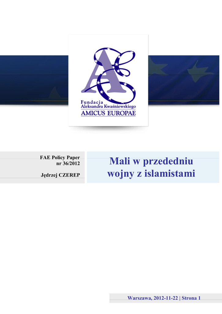 FAE Policy Paper nr 36/2012 Jędrzej CZEREP Mali w przededniu wojny z islamistami Warszawa, 2012-11-22 | Strona 1 Mali w przededniu wojny z islamistami FAE Policy Paper nr 36/2012 Jędrzej Czerep W dniu 11 listopada 2012 r., podczas szczytu w Abudży, przywódcy krajów wchodzących w skład Wspólnoty Gospodarczej Państw Afryki Zachodniej (ECOWAS) przyjęli plan interwencji militarnej w Mali. Akcja zbrojna w północnej części kraju wydaje się kwestią tygodni. Wspólnota ma wystawić 3300 żołnierzy z Nigerii, Senegalu, Nigru, Burkina Faso, Ghany i Togo. Wsparcie logistyczne dla tej operacji obiecuje Francja. W miarę zbliżania się potencjalnego terminu interwencji, komplikuje się sytuacja wewnętrzna w samym Mali oraz w regionie – zarówno przeciwnicy jak i zwolennicy tej operacji militarnej zawierają taktyczne sojusze i próbują możliwie dużo ugrać dla siebie. Decyzja o regionalnej interwencji jest konsekwencją bezsilności władz malijskich wobec wypadków na północy kraju. Rząd w Bamako nie ma sił ani środków, aby przywrócić swoją władzę w Timbuktu, Gao czy Kidalu, gdzie od wiosny rozgrywa się scenariusz znany m.in. z Afganistanu, Iraku i Somalii. "Czarną dziurę" po wycofaniu państwa zapełniają rodzimi i zagraniczni radykałowie islamscy, terroryści i przemytnicy. To, co na początku 2012 r. wyglądało na kolejną rebelię Tuaregów (których wielu wróciło z Libii po upadku Kaddafiego, którego aktywnie i do końca wspierali) – szybko przerodziło się w nowy front światowego dżihadu. Ogłoszenie 6 kwietnia br. utworzenia własnego państwa – Azawadu – przez świecki tuareski ruch MNLA, okazało się jego "łabędzim śpiewem". Kiedy tylko z miast Północy wycofały się siły malijskie, sojusznicy MNLA z islamskiego ruchu Tuaregów Ansar al-Dine („Obrońcy Wiary”), postawili na alians z Al-Kaidą Islamskiego Maghrebu (AQIM). Obydwie grupy zaczęły wprowadzać ekstremalną wersję szariatu, zupełnie obcą kulturze Mali, a świeccy Tuaregowie utracili nagle polityczny grunt. W starożytnym Timbuktu utworzyli swoje kwatery najbardziej poszukiwani terroryści z północnoafrykańskiej "franczyzy" organizacji założonej przez Osamę bin Ladena, m.in. Mokhtar Belmokhtar i Abu Zeid, odpowiedzialni za porwania i egzekucje Europejczyków od Mauretanii po Niger. Islamiści zaczęli niszczyć wpisane na listę światowego dziedzictwa UNESCO zabytki Timbuktu, które uznali za sprzeczne ze swoją religią. Rozpoczęły się amputacje i wyroki śmierci, ze szkół wycofano m.in biologię, kobietom zakazano handlu ulicznego i narzucono stroje zakrywające całe ciało. Na listę czynności zakazanych trafiły piłka nożna i świecka muzyka. Na ulice wyjechały patrole uzbrojonych "stróżów Warszawa, 2012-11-22 | Strona 2 Mali w przededniu wojny z islamistami FAE Policy Paper nr 36/2012 Jędrzej Czerep moralności". Ansar al-Dine ogłosiła, że ich celem jest wprowadzenie szariatu w całym Mali, a nie tylko w "Azawadzie" i zaczęło intensywnie promować swoją "sprawę" w Internecie. Na odzew nie trzeba było długo czekać – do Mali ruszyły zastępy młodych dżihadystów z Afryki, Bliskiego Wschodu i Europy. Jednocześnie w okolicach Gao, gdzie siedzibę miał "rząd Azawadu", uaktywnił się Ruch na Rzecz Jedności i Dżihadu w Afryce Zachodniej (MUJAO). Ugrupowanie, które odłączyło się, czy też rozluźniło relacje z AQIM pod koniec 2011 r., stawia sobie za cel przeniesienie dżihadu do krajów na południe od Sahary. W tym celu poszukiwało członków spośród czarnoskórych mieszkańców państw Afryki Subsaharyjskiej. Dało się poznać porwaniami 2 Hiszpanów i Włoszki spod Tindouf na granicy Algierii i Sahary Zachodniej (październik 2011), atakami na wojsko na południu Algierii, oraz uprowadzeniem algierskich dyplomatów z konsulatu w Gao (wiosna 2012). Na pocz. czerwca MUJAO wyrzucił tuareskich separatystów z ich "stolicy" i analogicznie do AQIM i Ansar Dine, wprowadził ekstremalną wersję porządków islamskich. Co ciekawe, Ruch zyskał pewne poparcie czarnej ludności, na zasadzie "wszystko byle nie Tuaregowie", oraz odwołaniami do tradycji lokalnego królestwa Songhai. Gao, podobnie jak wcześniej Timbuktu, stało się centrum "pielgrzymek" chętnych do udziału w świętej wojny, m.in. z Nigerii, Mauretanii i Algierii. Islam w Afryce saharyjskiej i subsaharyjskiej Warszawa, 2012-11-22 | Strona 3 Mali w przededniu wojny z islamistami FAE Policy Paper nr 36/2012 Jędrzej Czerep Wydarzeniom tym biernie przyglądała się ekipa rządząca z Bamako. Dokonany przez kapitana Sanogo 22 kwietnia br. kuriozalny pucz w stolicy Mali (na kilka dni przed końcem kadencji prezydenta), zamiast pomóc armii zaprowadzić porządek na Północy, jeszcze bardziej ją sparaliżował. Kraj został zawieszony w prawach członka przez Unię Afrykańską, a społeczność międzynarodowa zażądała powrotu do konstytucyjnych rządów cywilnych. Dodatkowo, tymczasowe władze malijskie nie godziły się na obcą interwencję, żądając w zamian posiłków dla własnej armii. Sprawy nabrały nowej dynamiki dopiero w ostatnich tygodniach. Wraz z decyzją ECOWAS o akcji zbrojnej strony konfliktu starają się zająć możliwie dogodną dla siebie pozycję. Istniejące różnice pomiędzy nimi każą wątpić w możliwość znalezienia kompromisowego rozwiązania. AQIM Al-Kaida Islamskiego Maghrebu od połowy ub. dekady penetruje pogranicze malijskoalgierskie, gdzie ma swoje dobrze ukryte bazy. Na terenach na północ od Kidal tradycyjnie ukrywała zakładników, z których najdłuższy staż ma 5 francuskich pracowników firmy Areva, uprowadzonych w Nigrze 2 lata temu. O ile jeszcze niedawno porwania dla okupu były dla grupy intratnym sposobem zdobywania funduszy, od ponad roku system "zatkał się". Spowodowały to zbyt wysokie żądania, przesadnie rozbudowany łańcuch pośredników w negocjacjach (który ze wzrostem stawek degener