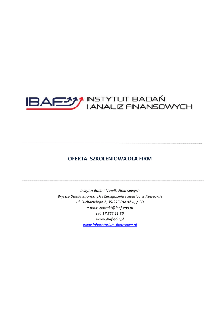 szkolenia dla firm - Instytut Badań i Analiz Finansowych