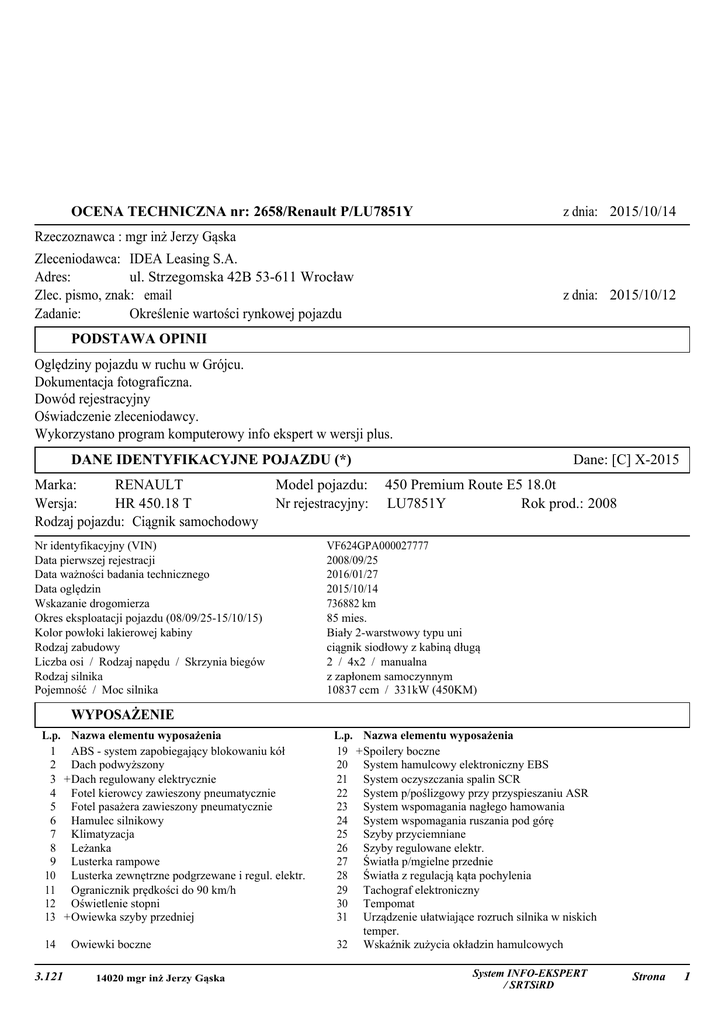 2658/Renault P/LU7851Y Rzeczoznawca : mgr in Jerzy Gąska IDEA
