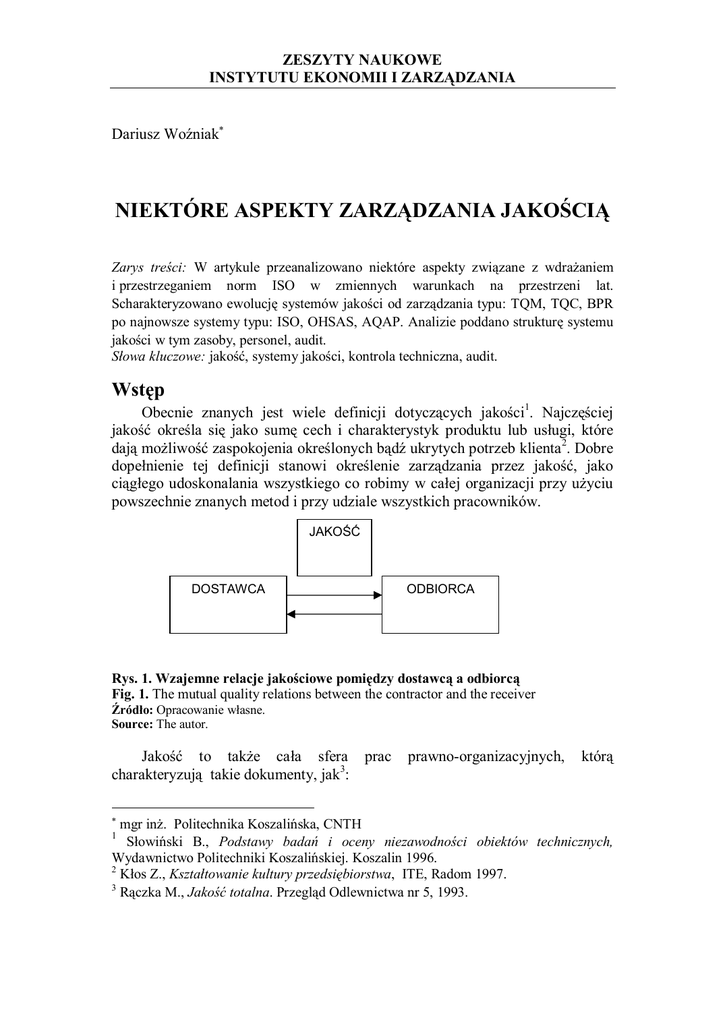 niektóre aspekty zarządzania jakością - Zeszyty WNE