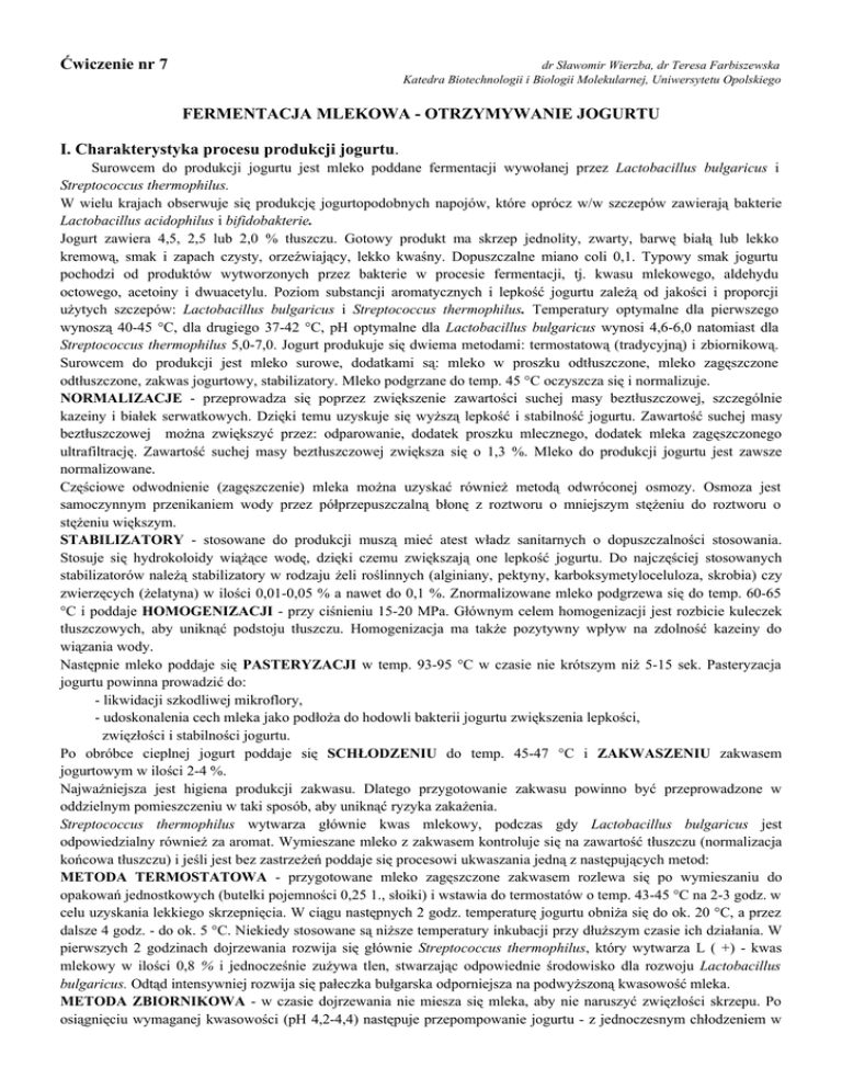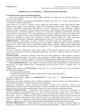 Ćwiczenie nr 7 FERMENTACJA MLEKOWA