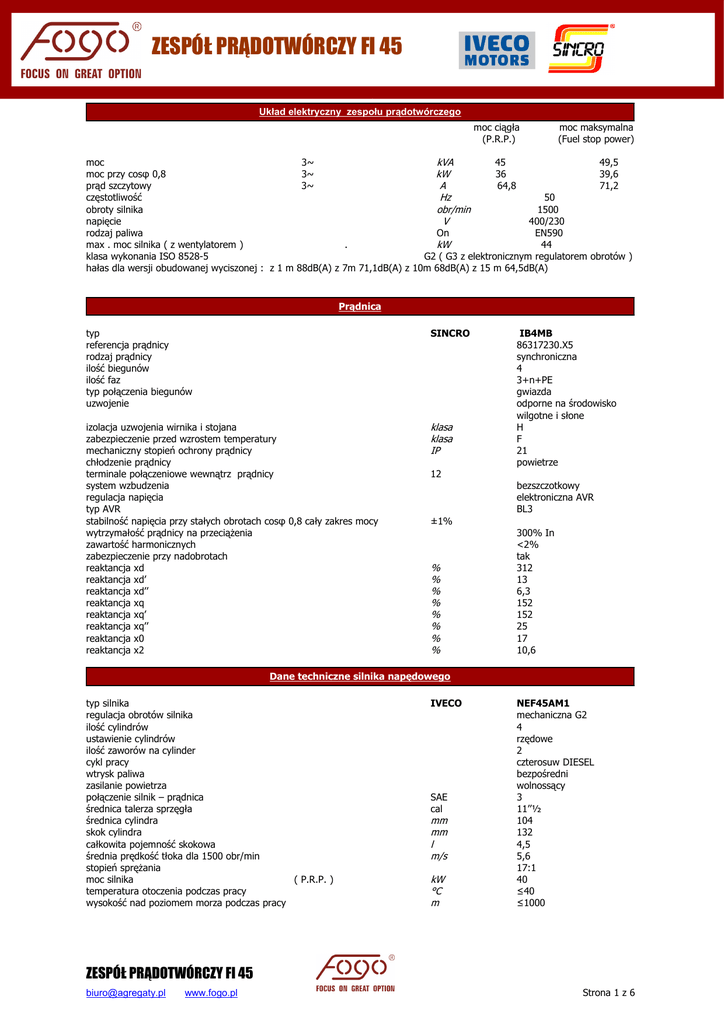 ZESPÓŁ PRĄDOTWÓRCZY FI 45
