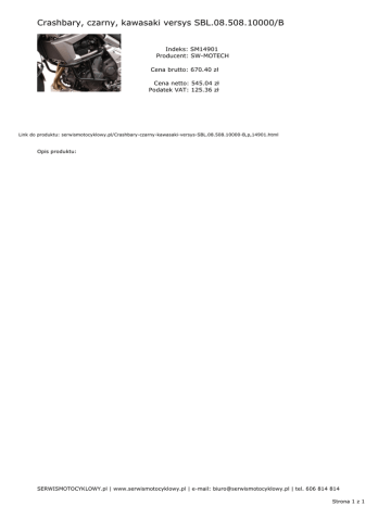 Crashbary, czarny, kawasaki versys SBL.08.508.10000/B Indeks: SM14901 Producent: SW-MOTECH Cena brutto: 670.40 zł Cena netto: 545.04 zł Podatek VAT: 125.36 zł Link do produktu: serwismotocyklowy.pl/Crashbary-czarny-kawasaki-versys-SBL.08.508.10000-B,p,14901.html Opis produktu: SERWISMOTOCYKLOWY.pl | www.serwismotocyklowy.pl | e-mail: [email protected] | tel. 606 814 814 Strona 1 z 1