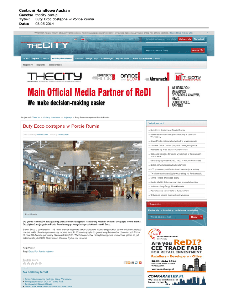Centrum Handlowe Auchan Gazeta: thecity.com.pl Tytu³: Buty Ecco dostêpne w Porcie Rumia Data: 05.05.2014 × W ramach naszej witryny stosujemy pliki cookies. Kontynuując przeglądanie strony, wyrażasz zgodę na używanie przez nas plików cookies. Dowiedz się w ięcej tutaj. | TheCity Mobile Mapa serwisu RSS Nie jesteś zalogowany w portalu Zaloguj się Wpisz szukaną frazę Start Rynek Najemcy Biura Raporty Obiekty handlowe Hotele Magazyny Publikacje Wydarzenia Rejestruj Szukaj The City Business Forum Wiadomości Tu jesteś: The City Obiekty handlowe Najemcy Buty Ecco dostępne w Porcie Rumia Wiadomości Buty Ecco dostępne w Porcie Rumia Buty Ecco dostępne w Porcie Rumia Data publikacji: 05/05/2014 , Autorzy: MJeziorski Mała Pasta - nowy budynek biurowy w centrum Warszawy Smeg Polska najemcą budynku Iris w Warszawie Piastów Office Center pozyskał nowego najemcę Rozrasta się food court w Galerii Sfera Cadence Designs Systems wynajmuje w Katowicach i Warszawie Otwarcie przychodni ENEL-MED w Atrium Promenada Niskie ceny materiałów budowlanych LPP przeznaczy 400 mln zł na inwestycje w sklepy TK Maxx otwiera swój pierwszy sklep na Podkarpaciu Sfinks Polska zmniejsza straty Media Markt i Saturn wzmacniają sprzedaż on-line Ambitne plany Grupy Muszkieterów Powiększono salon CCC w Turawa Park Unibep nie będzie budował pod Moskwą Newsletter Zapisz się na bezpłatny, codzienny newsletter Port Rumia Wpisz adres e-mail Do grona najemców zarządzanej przez Immochan galerii handlowej Auchan w Rumi dołączyła nowa marka. Od piątku 2 maja goście Portu Rumia mogą cieszyć się produktami marki Ecco. Salon Ecco o powierzchni 148 mkw. oferuje wysokiej jakości obuwie. Obok eleganckich butów w lokalu znaleźć m ożna także obuwie sportowe czy modne torebki. Ecco dołączyło do grona innych salonów obuwniczych Portu Rumia CH Auchan przy ulicy Grunwaldzkiej 108. Wśród najemców zarządzanej przez Immochan galerii są już takie lokale jak CCC, Deichmann, Centro, Ryłko czy Lasocki. Kraj: Poland Tagi: Ecco, Port Rumia, najemcy Średnia ocena Na podobny temat Smeg Polska najemcą budynku Iris w Warszawie Powiększono salon CCC w Turawa Park Empik wybrał Galerię Olimpia Gemini Park Bielsko-Biała wprowadza nowe marki Dodaj Centrum Handlowe Auchan Gazeta: thecity.com.pl Tytu³: Buty Ecco dostêpne w Porcie Rumia Data: 05.05.2014 Nowy Jubitom w Galerii Malta Kolejny modowy najemca w Galerii Bronowice Pierwszy salon Olimp Live & Fight w Polsce Najczęściej czytane Najwyżej oceniane Więcej miejsca dla dzieci w gdańskim Madisonie Knight Frank bierze na celownik rynek biurowy w miastach średniej wielkości Komentarze DoubleTree by Hilton Łódź w światowej czołówce Robyg ma kolejne pozwolenie na budowę w Wilanowie Zaloguj się aby móc dodawać nowe komentarze. Amerykańskie kanapki na Krupówkach Ruszyła budowa inwestycji biurowej Domaniewska Office Hub Powrót do góry Okęcie: Terminal 1 na surowo Warbud z kontraktem w Koszalinie Centrum Handlowo-Rozrywkowe "Sukcesja" Oaza Piątkowo otrzymała pozwolenie na użytkowanie biura CBRE CCC centra handlowe centrum handlowe Colliers International Cushman & Wakefield DTZ Echo Investment Gdańsk giełda GPW GTC Jones Lang LaSalle Katowice Kraków LPP Lublin magazyny mieszkania najemcy Poznań przetarg Raport Reserved Rzeszów Szczecin The City O serwisie Regulamin Polityka prywatnościi Reklama www.wcentrum.pl Warszawa Wrocław Kontakt Property Media Group s.c. ul. Stępińska 22/30 00-739 Warszawa Formularz kontaktowy Copyright (c) 2011 - 2014 The City | All rights reserved | Polityka prywatności tel. +48 22 841 31 52 tel. +48 22 851 03 05 tel./fax +48 22 840 65 21 NIP 5213543170 REGON 142022595 Łódź