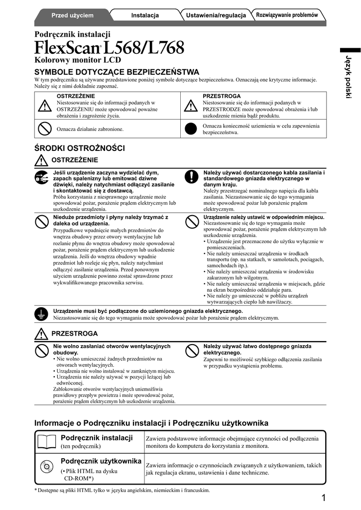 FlexScan L568/L768 Podręcznik instalacji