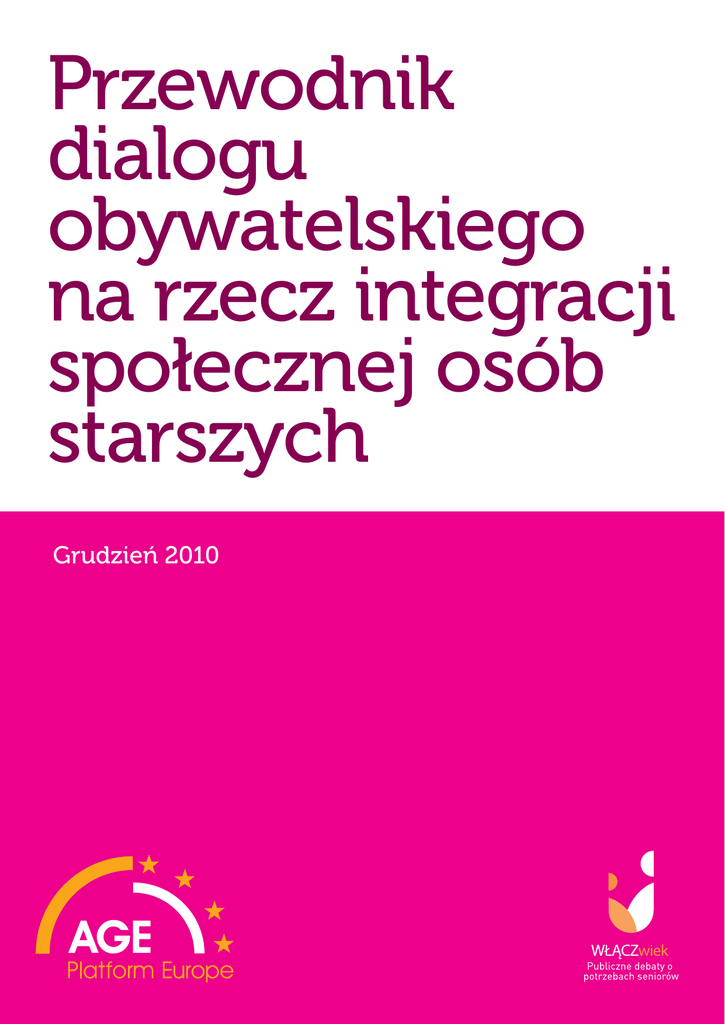 Przewodnik dialogu obywatelskiego na rzecz integracji społecznej osób starszych Grudzień 2010 Table of content 1 1 2 Słowo wstępne Kontekst Definicja dialogu obywatelskiego 2 I. Dobre praktyki dialogu obywatelskiego w kwestii procesu starzenia 3 7 8 9 10 13 II. Zaangażowanie organizacji osób starszych w dialog obywatelski Jakie są korzyści płynące z zaangażowania się w dialog obywatelski? 13 14 16 Dialog obywatelski obejmujący osoby starsze i ich organizacje Dialog obywatelski promujący społeczną integrację osób w starszym wieku Inne inicjatywy na rzecz dialogu obywatelskiego promowane przez organizacje pozarządowe Regulacje prawne wspierające społeczeństwo obywatelskie i dialog obywatelski Dialog obywatelski na wszystkich płaszczyznach rządzenia Jakie są przeszkody i wyzwania na drodze do zaangażowania się? Jakie są czynniki decydujące o skutecznym zaangażowaniu się? 17 III. Zalecenia w zakresie umacniania dialogu obywatelskiego 18 20 21 Wnioski Zadania stojące przed organizacjami osób starszych Zadania stojące przed władzami publicznymi Słowo wstępne Naszym nadrzędnym celem jest wzmóc oraz pogłębić na szczeblu krajowym debaty na W ramach projektu WŁĄCZwiek, organizacje temat promocji oraz zapewnienia godności osób starszych z Bułgarii, Czech, Finlandii, i dobra osób starszych. Niemiec, Włoch, Polski i Słowacji oraz członkowie AGE Platform Europe stworzyły niniejszy Przewodnik dialogu obywatelskiego na rzecz integracji społecznej osób starszych Kontekst (w dalszym ciągu zwanym Przewodnikiem). Powszechnie znanym jest fakt, iż rosnąca liczba jest obywateli czuje się wykluczona z głównego zaprezentowanie przykładów dobrych praktyk nurtu politycznych i społecznych debat oraz dialogu obywatelskiego na temat kwestii że demokracja pośrednia (przedstawicielska) związanych z procesem starzenia, włączając zawodzi w to te, które promują społeczną integrację i zaspokajania potrzeb ludzi. Jednocześnie osób w starszym wieku. Przewodnik zawiera społeczeństwo obywatelskie stale się rozrasta także propozycje na temat tego, jak najlepiej i wdrażać oraz uczestniczyć w procesach przez organizacje pozarządowe oraz grupy, dialogu obywatelskiego na każdym szczeblu które wyłoniły się z lokalnych społeczności. podejmowania decyzji w zakresie polityki Ci różnorodni przedstawiciele społeczeństwa krajowej: począwszy od rządowych poprzez obywatelskiego regionalne a skończywszy na lokalnych fundamentalną część demokracji i umożliwiają strategiach i inicjatywach, majacych na celu obywatelom wyrażanie poglądów na temat poprawę codziennego życia osób starszych. kwestii społecznych oraz wpływanie na Celem niniejszego Przewodnika w obecnie kwestii jest łagodzenia szeroko obaw reprezentowane stanowią nową oraz procesy podejmowania decyzji na wszystkich Przewodnik prezentuje również konkretne zalecenia. Po pierwsze, w jaki szczeblach. sposób organizacje osób starszych mogą zachęcić Organizacje osob starszych samodzielne osoby starsze do odgrywania aktywnej roli występujących we własnym imieniu (ang. w debatach politycznych i skutecznego self-advocacy) angażowania się w proces podejmowania angażować się w procesy kształtowania decyzji politycznych; po drugie, w jaki sposób polityk, w celu wyrażania trosk oraz kwestii same władze publiczne powinny wspierać ich dotyczących. Głos zwyczajnych starszych osoby starsze i ich organizacje na rzecz ludzi jest w obecnych czasach niezbędny trwałego dialogu obywatelskiego w zakresie bardziej niż kiedykolwiek, ze względu na podejmowania decyzji politycznych w kwestiach przyspieszający proces starzenia się populacji związanych ze starzeniem. i ogólnie pogarszającą się, ze wzgledu na kryzys, również sytuację próbują społeczną. aktywnie dialog obywatelski pomiędzy obywatelami wykorzystany zarówno przez organizacje w każdym wieku, władzami publicznymi osób starszych jak i władze publiczne oraz podmiotami, których decyzje wpływają wszystkich na w celu ułatwienia codzienne życie ludzi „Głos zwyczajnych starszych ludzi jest w obecnych czasach niezbędny bardziej niż kiedykolwiek, ze względu na przyspieszający proces starzenia się populacji i ogólnie pogarszającą się, ze wzgledu na kryzys, sytuację społeczną.” Szeroki Żywimy nadzieję, że Przewodnik ten zostanie szczebli „Żywimy nadzieję, że Przewodnik ten zostanie wykorzystany zarówno przez organizacje osób starszych jak i władze publiczne wszystkich szczebli w celu ułatwienia nawiązania szerokiego dialogu pomiędzy zainteresowanymi osobami i podmiotami.” będzie miał nawiązania szerokiego dialogu pomiędzy rozstrzygające znaczenie w kwestii reakcji na zainteresowanymi osobami i podmiotami. zmiany demograficzne. Przewodnik dialogu obywatelskiego na rzecz integracji społecznej osób starszych 1 „Dialog obywatelski jest natury ogólnej i odnosi sie do polityki publicznej jako całości, podczas gdy dialog społeczny obejmuje specyficzne zagadnienia makroekonomiczne oraz jest zorganizowany wokół jasnych celów i przy udziale określonych stron - władz publicznych, pracodawców i pracowników.” Definicja dialogu cywilnego - Różnorakie formy działania społeczeństwa obywatelskiego poczynając od prostego rozpowszechniania informacji, poprzez procesy konsultacji, aż do Nie istnieje jednolita definicja dialogu aktywnego zaangażowania w podej- obywatelskiego. Nie jest on ani równoległy ani uzupełniający względem dialogu mowanie decyzji; - Działania odbywające sie na każdym eta- społecznego. Dialog obywatelski jest natury pie procesów decyzyjnych: ustanawianie ogólnej i odnosi sie do polityki publicznej struktur, definiowanie celów politycz- jako całości, podczas gdy dialog społeczny nych, wdrażanie, monitorowanie, oce- obejmuje nianie i zapewnianie „ciągu dalszego”. specyficzne zagadnienia makroekonomiczne oraz jest zorga