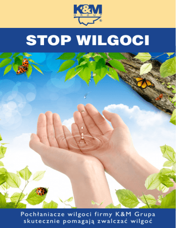 STOP WILGOCI Po c h ł a n i a c z e w i l go c i f i r my K & M G r u p a s k u t e c z n i e p o m a g a j ą z w a l c z a ć w i l go ć Stop wilgoci o każdej porze roku! O wilgoci słów kilka Wilgoć to poważny problem w każdym pomieszczeniu domu i nie tylko. Jej nadmiar wpływa negatywnie na materiały wykończeniowe, wywołując korozję metali, pleśnie, zagrzybienia na ścianach, a towarzyszący jej wszechobecny zapach stęchlizny bardzo trudno usunąć z pomieszczeń. Zaparowane szyby, odpadające tynki i farby ze ścian, odklejające się tapety, brzydkie naloty na przedmiotach metalowych – to pierwsze oznaki nadmiaru wilgoci. Niezwalczana wilgoć zwiększa ryzyko wystąpienia alergii, przeziębień, wpływa niekorzystnie na nasze samopoczucie, uwypuklając nieprzyjemne zapachy przypalonego tłuszczu, dymu tytoniowego. Staje się uciążliwa w momencie jazdy samochodem, kiedy para pojawia się na szybach, ograniczając znacznie lub całkowicie widoczność. Ze względów zdrowotnych i do utrzymania komfortu cieplnego wilgotność względna w temperaturze 20-22°C powinna wynosić 30-65%. W wyższych temperaturach wilgotność nie powinna przekraczać 55%. Gdy wilgotność powietrza jest większa niż 70%, w pomieszczeniu pojawiają się grzyby, pleśń oraz inne mikroorganizmy szkodliwe dla ludzi i zwierząt. W dobie coraz wyższych cen energii istotną informacją jest, że do ogrzania wilgotnego powietrza w pomieszczeniach potrzeba znacznie więcej ciepła niż do ogrzania powietrza suchego. W okresie jesienno-zimowym wilgoć zagląda również do naszych aut. Zaparowane szyby stają się zmorą każdego z nas, a wdzierająca się wilgoć przyspiesza korozję metalowych przedmiotów i negatywnie wpływa na stan tapicerki i dywaników. Dlatego wychodząc naprzeciw tym problemom, przedstawiamy Państwu produkty HumiStop i AutoDry skutecznie walczące z nadmierną wilgocią w pomieszczeniach i samochodzie. Nasze pochłaniacze wilgoci: – skutecznie wchłaniają nadmierną wilgoć z powietrza do optymalnego dla zdrowia poziomu, – pochłaniają przykre zapachy stęchlizny i dymu tytoniowego, – – – – – zabezpieczają przed rozwojem grzybów, pleśni i przykrych zapachów, zapobiegają parowaniu szyb, nie wymagają zasilania, nie wysuszają powietrza, są łatwe i bezpieczne w stosowaniu. HumiStop znalazł zastosowanie w łazienkach, kuchniach, sypialniach, salonach, biurach, piwnicach, garażach, warsztatach, przyczepach kempingowych, łodziach i wielu innych pomieszczeniach o podwyższonej wilgotności powietrza oraz w pomieszczeniach nieogrzewanych, źle izolowanych lub z nadmiarem pary wodnej (np. pralnie). Ustawiony z dala od źródła ciepła (min. 20 cm), poza zasięgiem dzieci, zaczyna działać już po kilku dniach. Czas ten zależy od temperatury oraz stopnia wilgotności powietrza w pomieszczeniu. Im wyższe te parametry, pochłaniacz zaczyna działać szybciej. HumiStop działa w temperaturze od 0°C do 30°C. Im niższa temperatura, tym niższa skuteczność. Nie wydziela żadnego zapachu ani szkodliwych substancji. Wpływ pracy pochłaniacza na ludzi i zwierzęta jest obojętny. Roztwór w dolnym pojemniku naszego urządzenia może przyjmować zabarwienie od brudnoszarego poprzez żółty do transparentnego (czysta woda). Roztwór transparentny jest dowodem czystości powietrza w pomieszczeniu. W niektórych warunkach działania pochłaniacza może dochodzić do krystalizacji roztworu. Dochodzi do tego, gdy objętość roztworu w stosunku do substancji stałej jest zbyt mała, a także wtedy, gdy temperatura roztworu jest niska. Należy jednak zauważyć, że proces krystalizacji w pojemniku pochłaniacza nie jest w żaden sposób zjawiskiem negatywnym. Pojedynczy pochłaniacz wilgoci HumiStop z wkładem o wadze 280 g jest w stanie przyjąć co najmniej 300 g wody z powietrza, co oznacza obniżenie wilgotności w pomieszczeniu o ponad 13%. AutoDry to nowy produkt przeznaczony do zwalczania wilgoci w samochodach. Łatwe zastosowanie sprawia, że walka z zaparowanymi szybami staje się mniej uciążliwa, a problem ten można całkowicie wyeliminować. AutoDry – w przeciwieństwie do HumiStopa – nie zbiera wilgoci w postaci wody, lecz wchłania ją całkowicie dzięki higroskopijnym kryształkom, pozostawiając miejsce suche. Źródłem wilgoci w aucie przeważnie jesteśmy my sami. Wnosimy śnieg na butach, mokre od deszczu kurtki, płaszcze i parasole. To wszystko potęguje zjawisko, które szczególnie zaczyna nam dokuczać jesienią i zimą, gdy wahania temperatur są bardzo duże. Innymi przyczynami gromadzenia wilgoci mogą być: niesprawna klimatyzacja, zatkane otwory odpływowe, nieszczelne uszczelki w drzwiach i szybach. Samo wyeliminowanie przyczyn nie wystarczy do pozbycia się wilgoci w aucie. Umieszczenie AutoDry w pobliżu źródła wilgoci wewnątrz samochodu, jak i w bagażniku, skutecznie usuwa jej nadmiar przez ok. 3 miesięce. Preparat nie jest szkodliwy dla ludzi i zwierząt, nie wydziela żadnych zapachów, wręcz przeciwnie – niweluje obcy zapach stęchlizny. Zużyty AutoDry należy wyrzucić do śmieci. Definitywnie usuniemy wilgoć z Twojego mieszkania! K&M Grupa Sp. z o.o. ul. Zielińska 9, Gruszczyn, 62-006 Kobylnica tel. +48 61 89 75 106, fax +48 61 81 86 418 ©Wszelkie prawa zastrzeżone