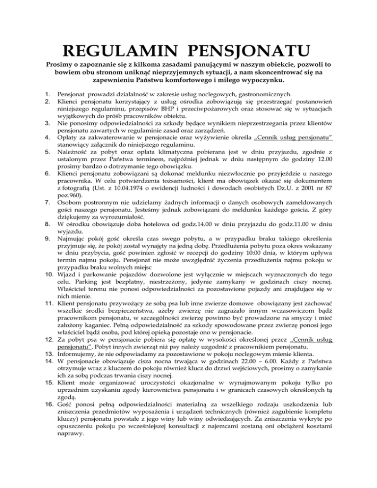 regulamin pensjonatu