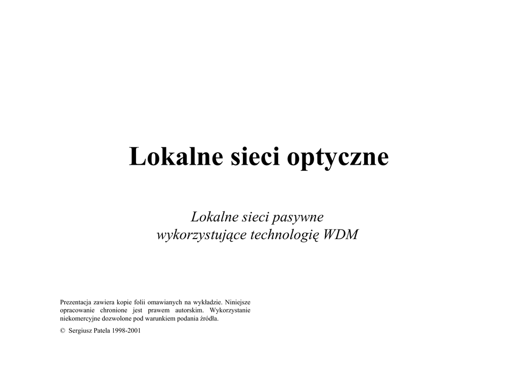 Prezentacja zawiera kopie folii omawianych na wykładzie. Niniejsze